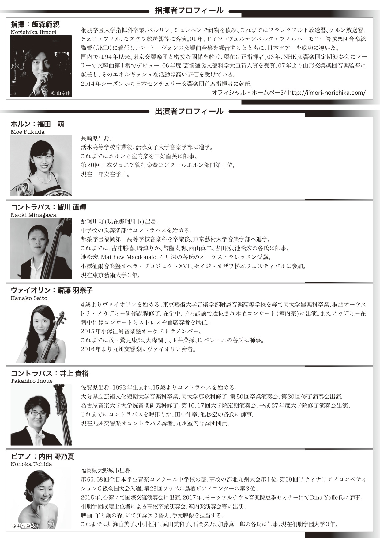 ホルン 福田 萌 コントラバス 皆川直輝 ヴァイオリン 齋藤羽奈子 コントラバス 井上貴裕 ピアノ 内田野乃夏 |