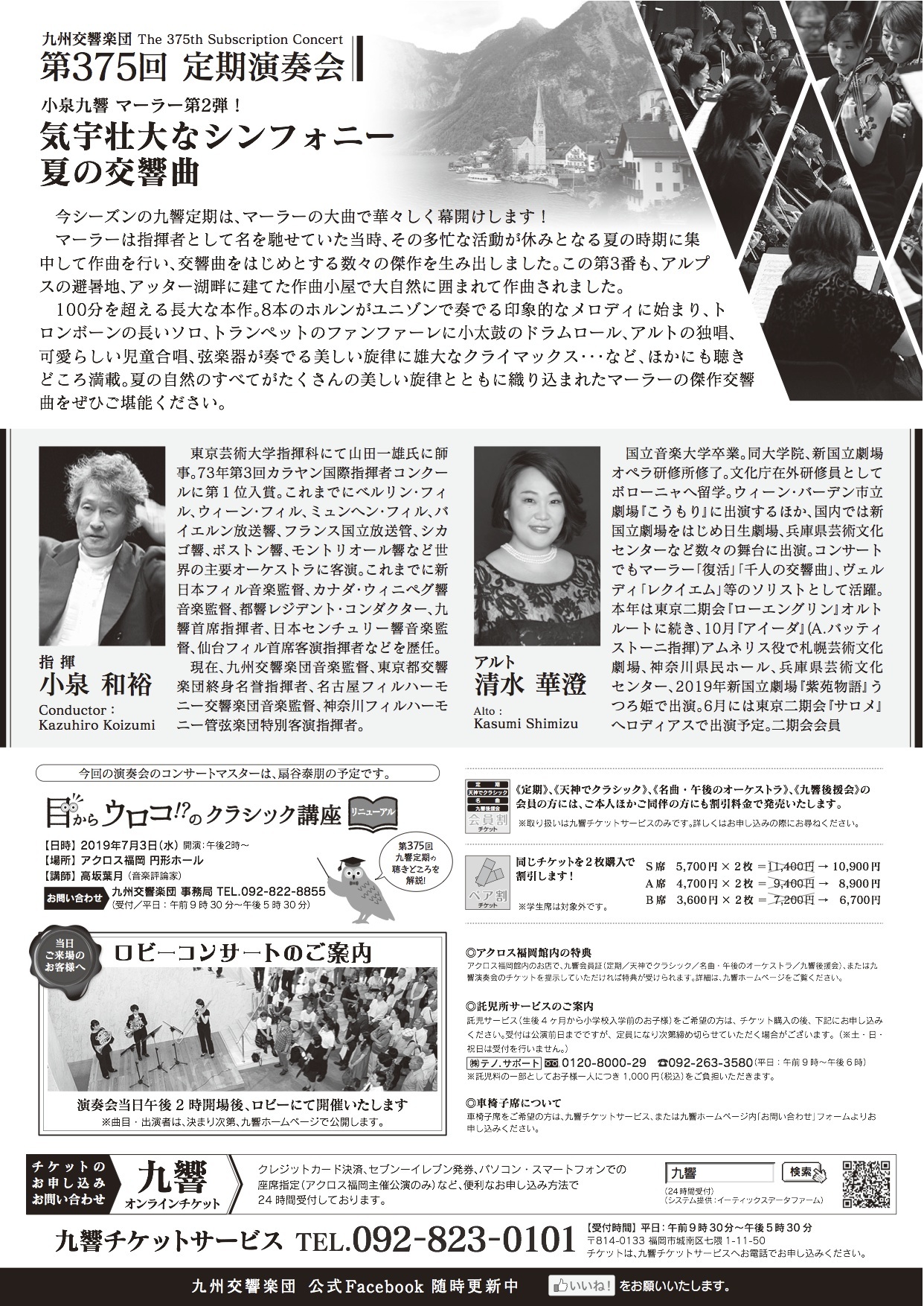 アルト 清水華澄 女声合唱 九響合唱団、RKB女声合唱団、福岡教育大学 音楽専攻学生、多目的混声合唱団"Chor Solfa!"、ちくしの混声合唱団、ほか 児童合唱 活水高等学校コーラス部 樟 Twinkle Stars、久留米児童合唱団 |