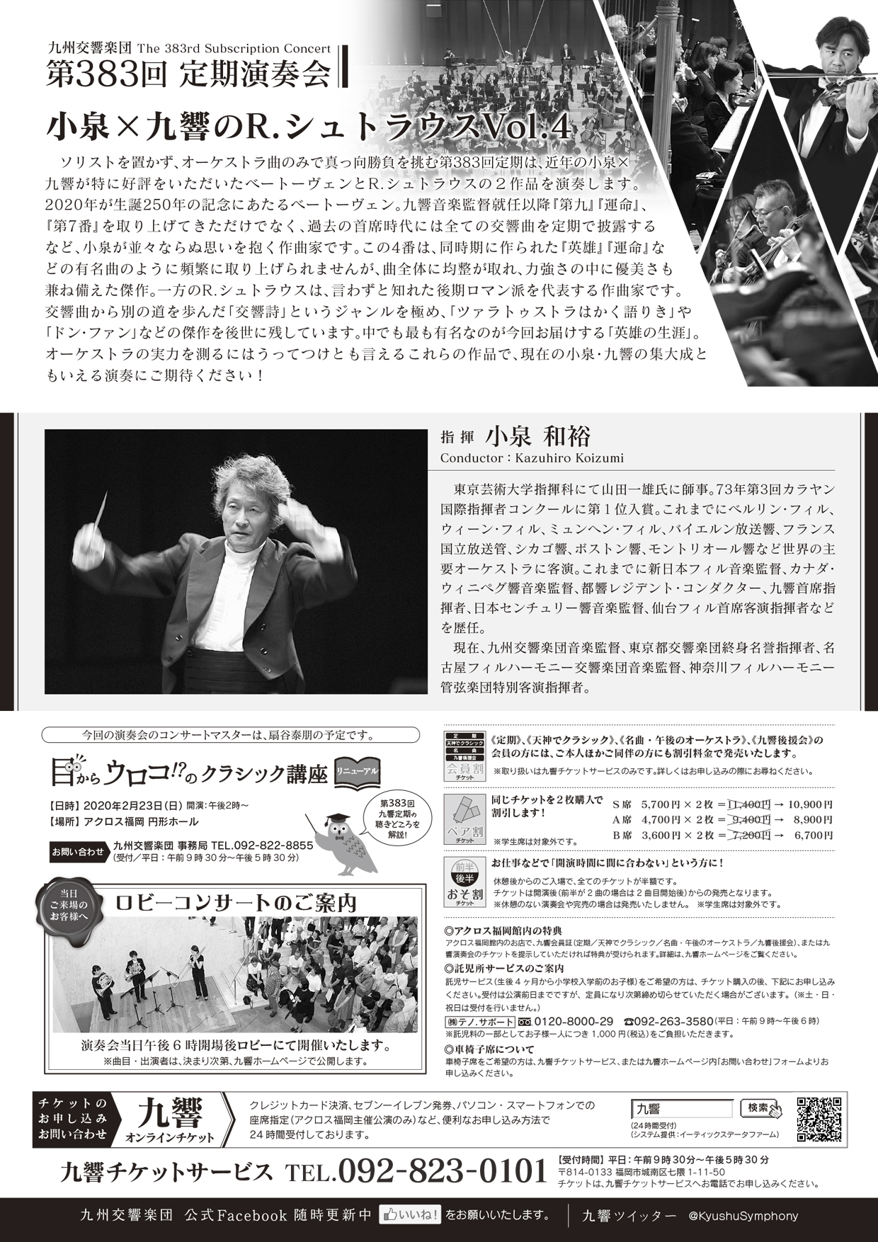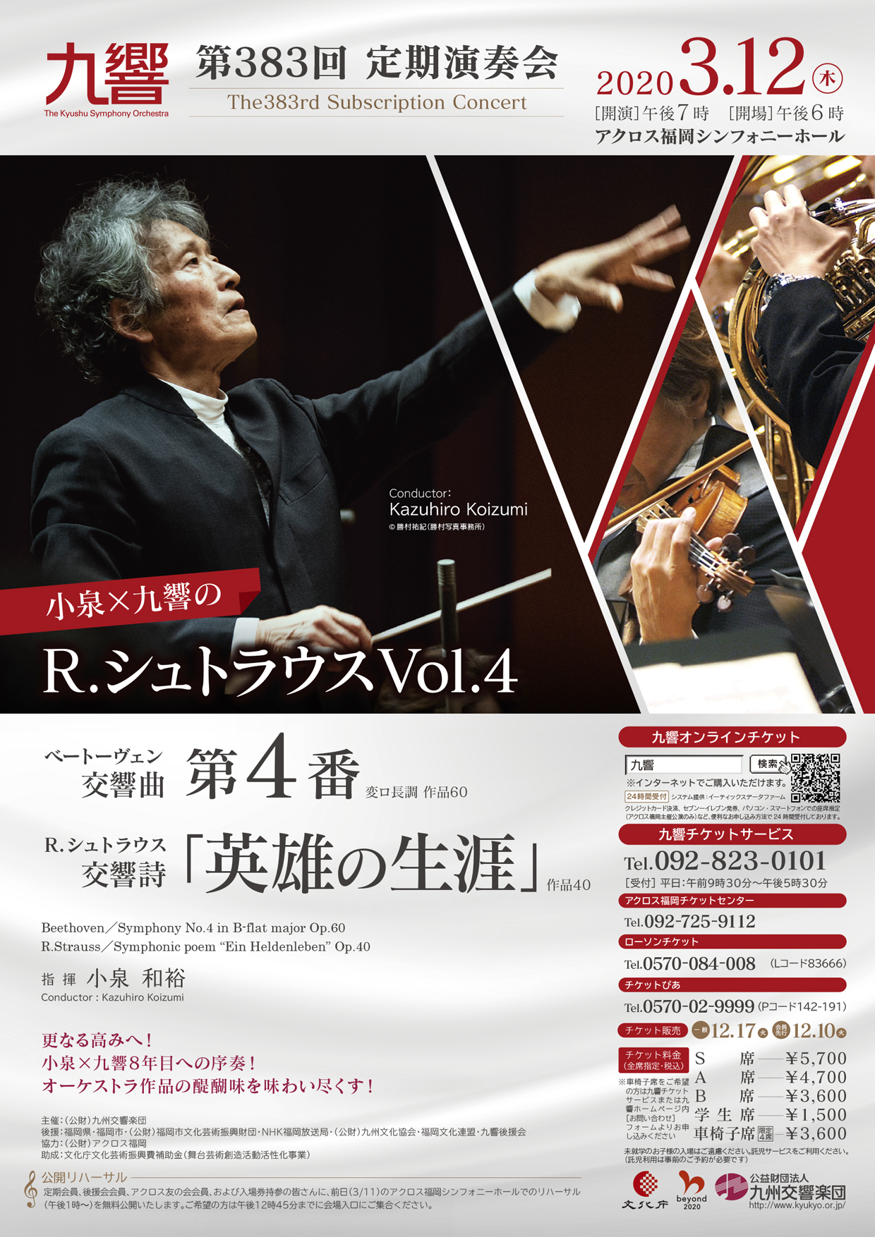 ※チケットの払い戻しについては こちら をご覧ください。 ベートーヴェン/交響曲 第4番 変ロ長調 作品60 R.シュトラウス/交響詩「英雄の生涯」作品40 |