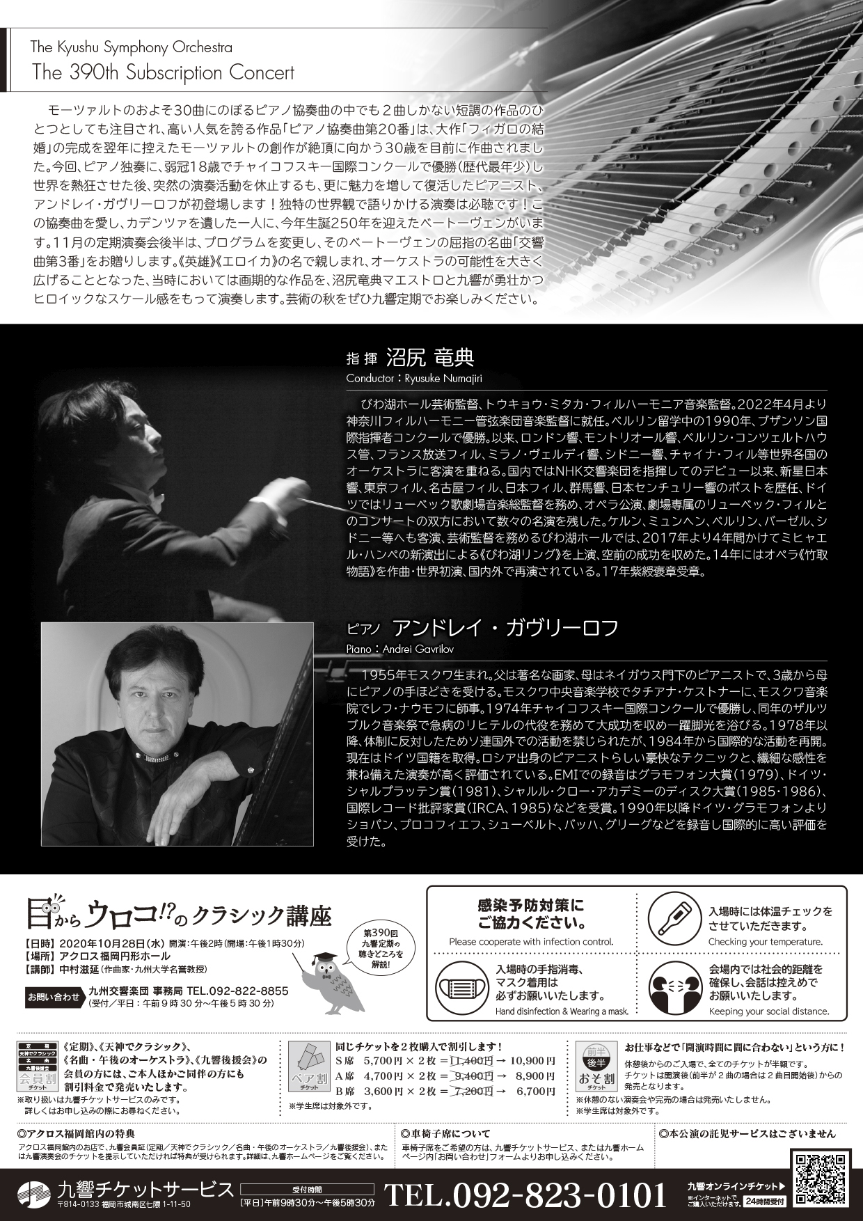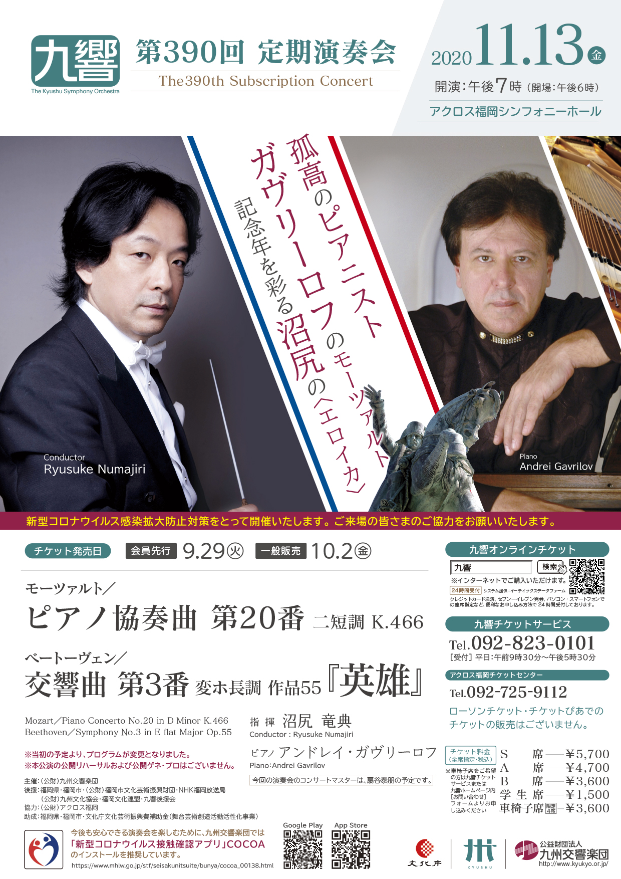 モーツァルト/ピアノ協奏曲 第20番 ニ短調 K.466 ベートーヴェン/交響曲第3番 変ホ長調 作品55 「英雄」 ※当初の予定よりプログラムが変更になりました ※コンサート会員の皆様は、会員証に記載のお座席でお楽しみください。感染予防のため、1階1列目は引き続きお座りいただくことができません。誠に申し訳ございませんがご理解くださいますようお願い申し上げます。 ※新型コロナウイルス感染予防対策をとって開催いたします。ご来場の皆さまのご協力をお願いいたします。(感染予防対策について、詳しくはこちら) |