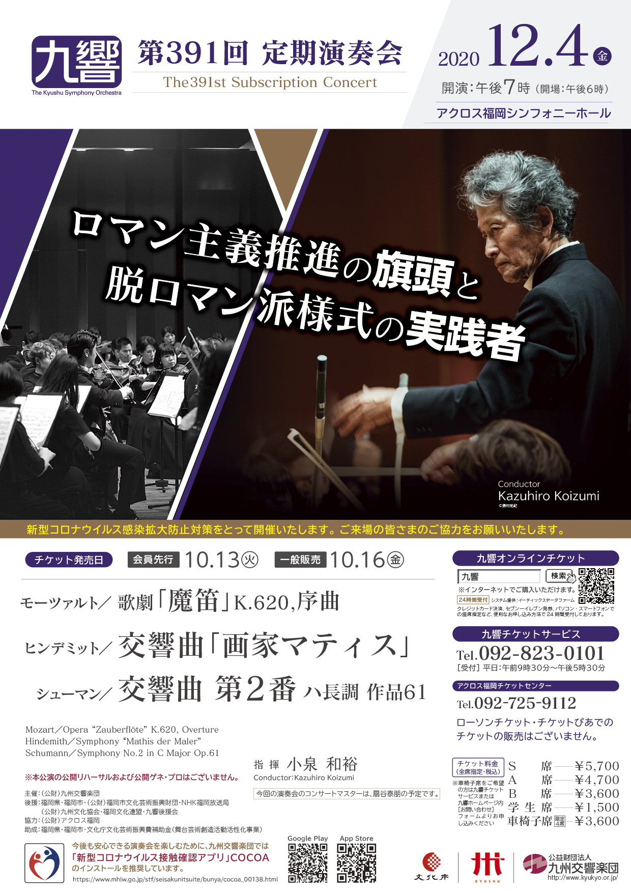モーツァルト/歌劇「魔笛」K.620,序曲 ヒンデミット/交響曲「画家マティス」 シューマン/交響曲 第2番 ハ長調 作品61 ※新型コロナウイルス感染予防対策をとって開催いたします。ご来場の皆さまのご協力をお願いいたします。(感染予防対策について、詳しくはこちら) |