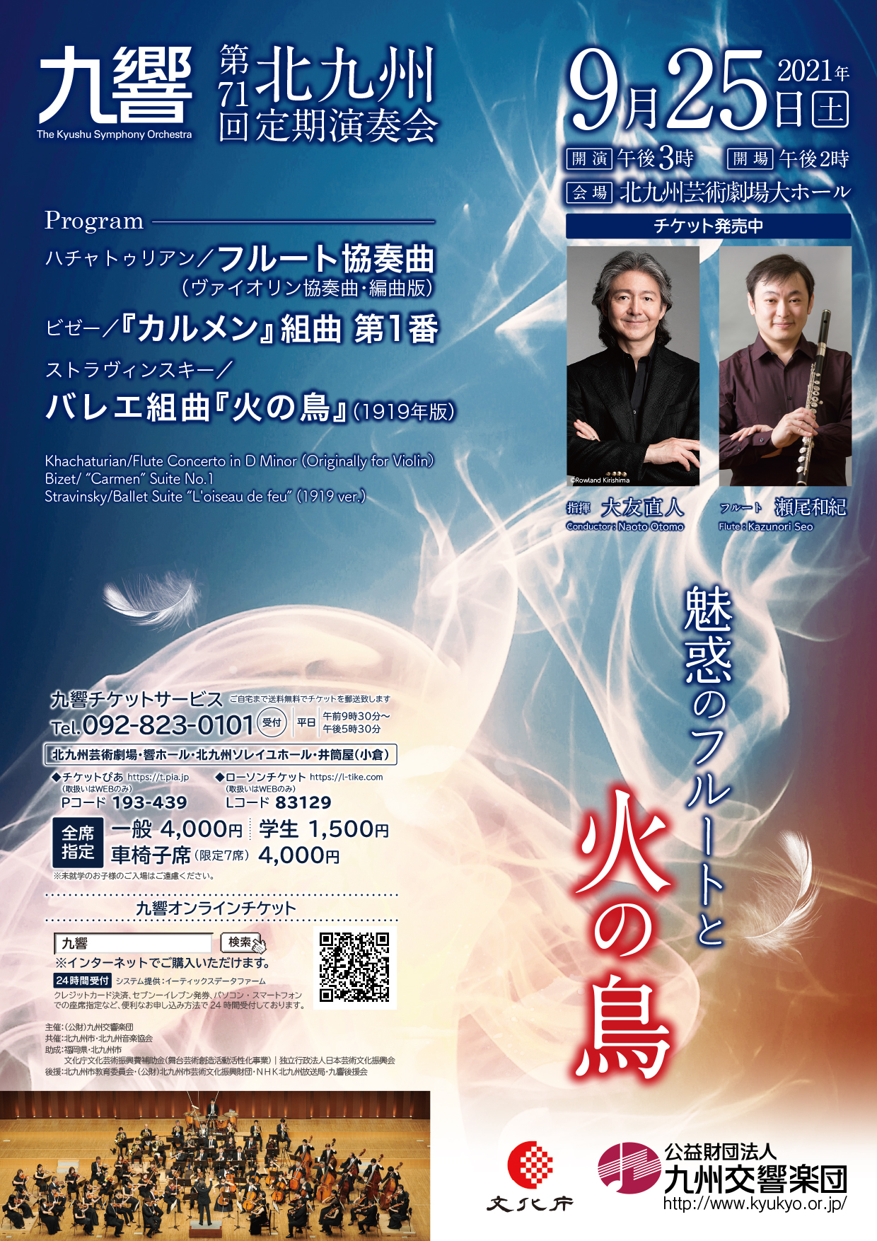 ハチャトゥリアン/フルート協奏曲(ヴァイオリン協奏曲・編曲版) ビゼー/「カルメン」組曲 第1番 ストラヴィンスキー/バレエ組曲「火の鳥」(1919年版) |