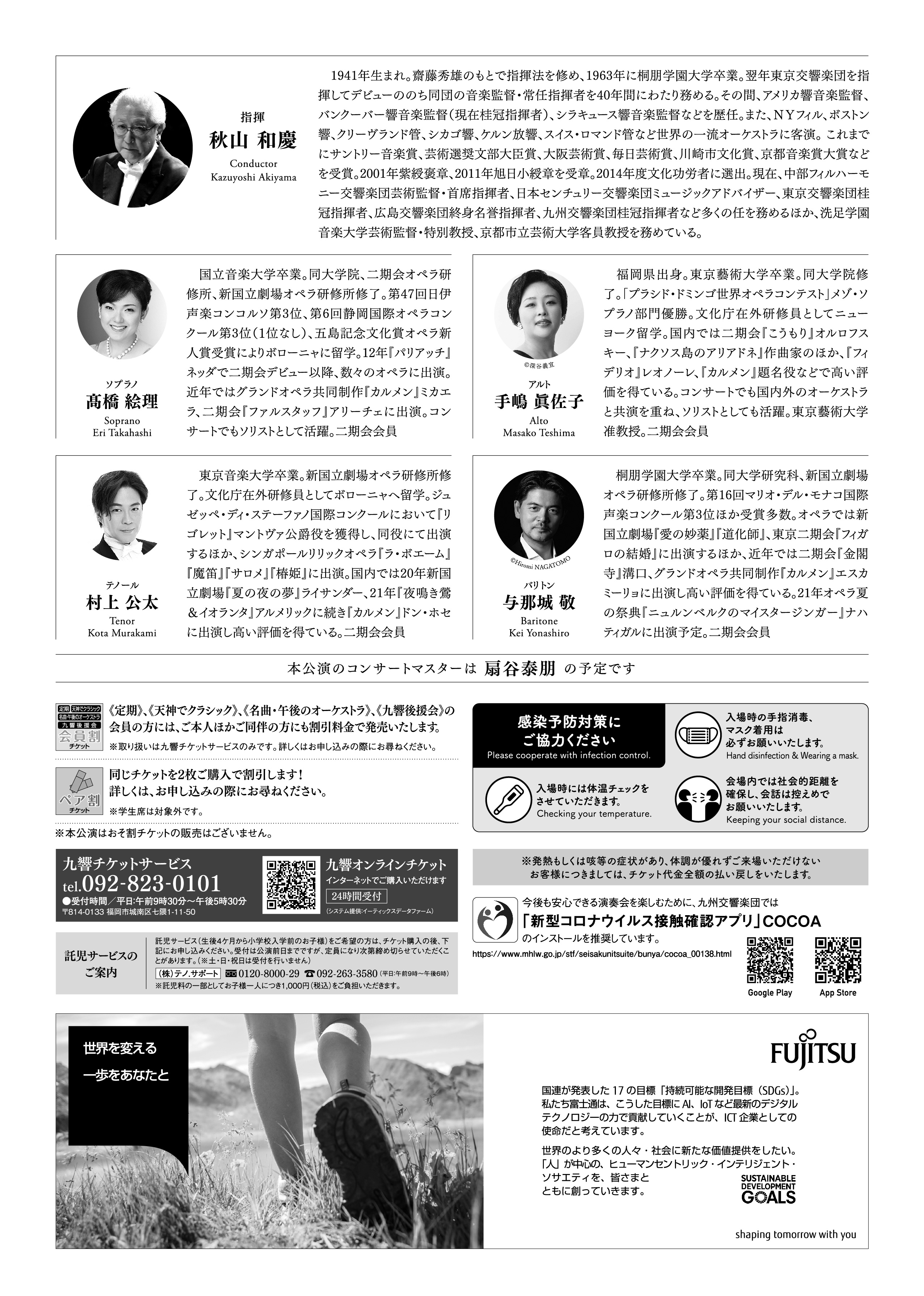 ソプラノ 髙橋 絵理 アルト 手嶋 眞佐子 テノール 村上 公太 バリトン 与那城 敬 合唱 九響合唱団、九響合唱団オフィシャルパートナー、東京混声合唱団 |