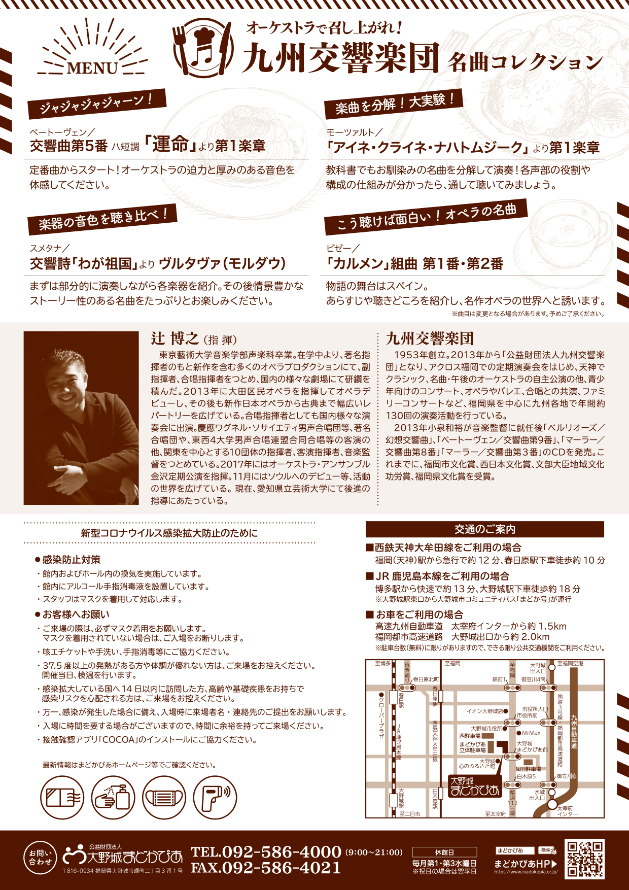 ベートーヴェン/ 交響曲第5 番 ハ短調「運命」より第1 楽章 モーツァルト/「アイネ・クライネ・ナハトムジーク」より第1 楽章 ビゼー/「カルメン」組曲 第1 番・第2 番 スメタナ/ 交響詩「わが祖国」よりヴルタヴァ(モルダウ) ※曲目は変更となる場合があります。予めご了承ください。 |