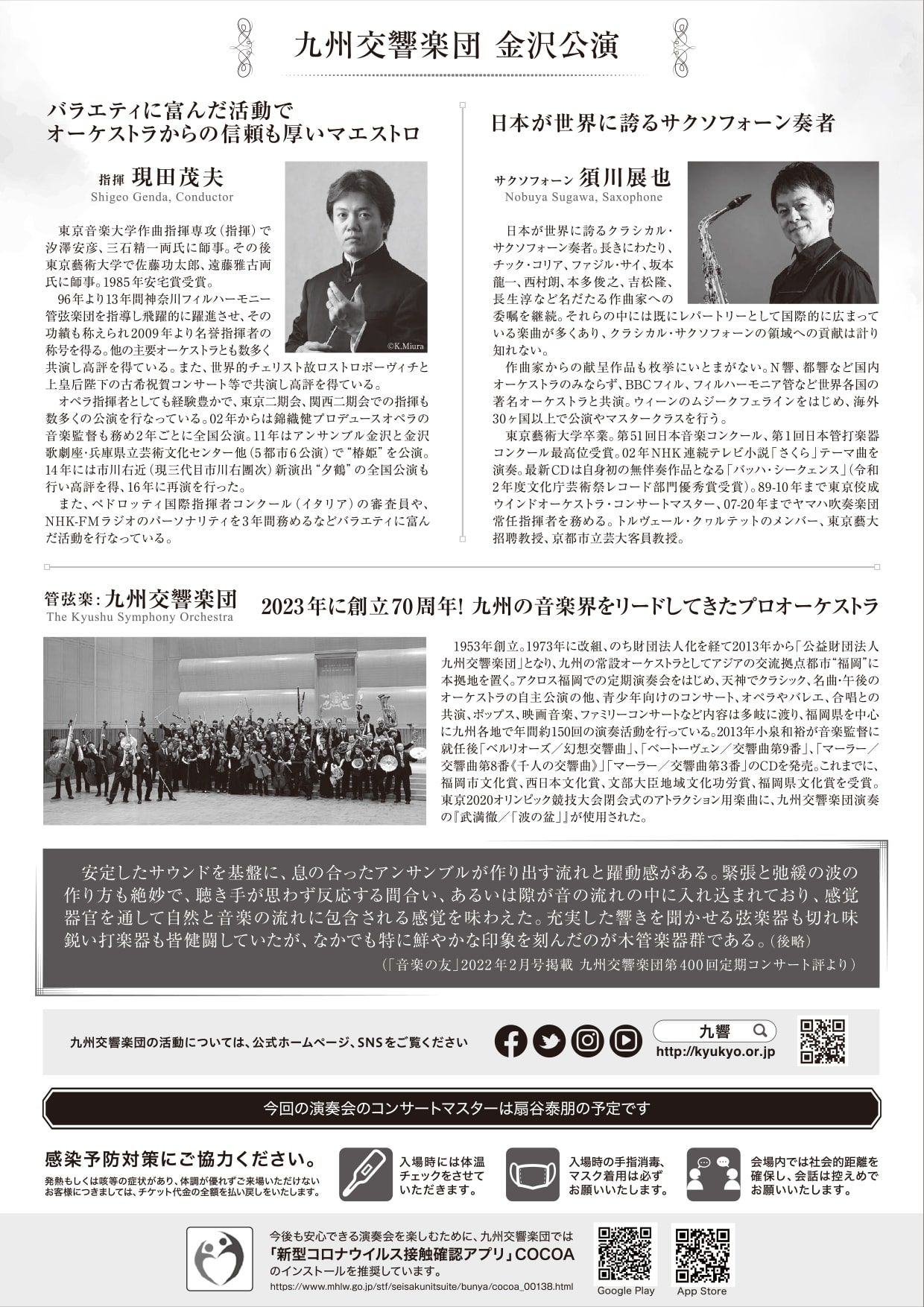 後援:石川県、金沢市、石川県教育委員会、金沢市教育委員会、MRO北陸放送、石川県吹奏楽連盟、九響後援会