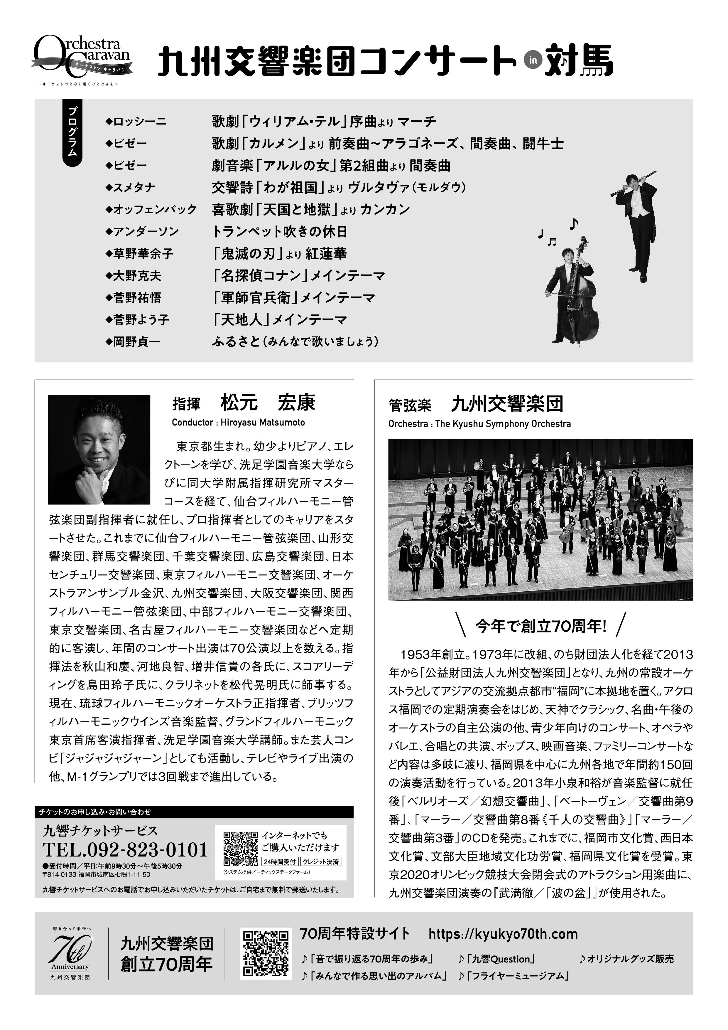 ロッシーニ 歌劇「ウィリアム・テル」序曲より マーチ ビゼー 歌劇「カルメン」より 前奏曲~アラゴネーズ、間奏曲、闘牛士 ビゼー 劇音楽「アルルの女」第2組曲より 間奏曲 スメタナ 交響詩「わが祖国」より ヴルタヴァ(モルダウ) オッフェンバック喜歌劇 「天国と地獄」より カンカン アンダーソン トランペット吹きの休日 草野華余子 「鬼滅の刃」より 紅蓮華 大野克夫 「名探偵コナン」メインテーマ 菅野祐悟 「軍師官兵衛」メインテーマ 菅野よう子 「天地人」メインテーマ 岡野貞一 ふるさと(みんなで歌いましょう) |