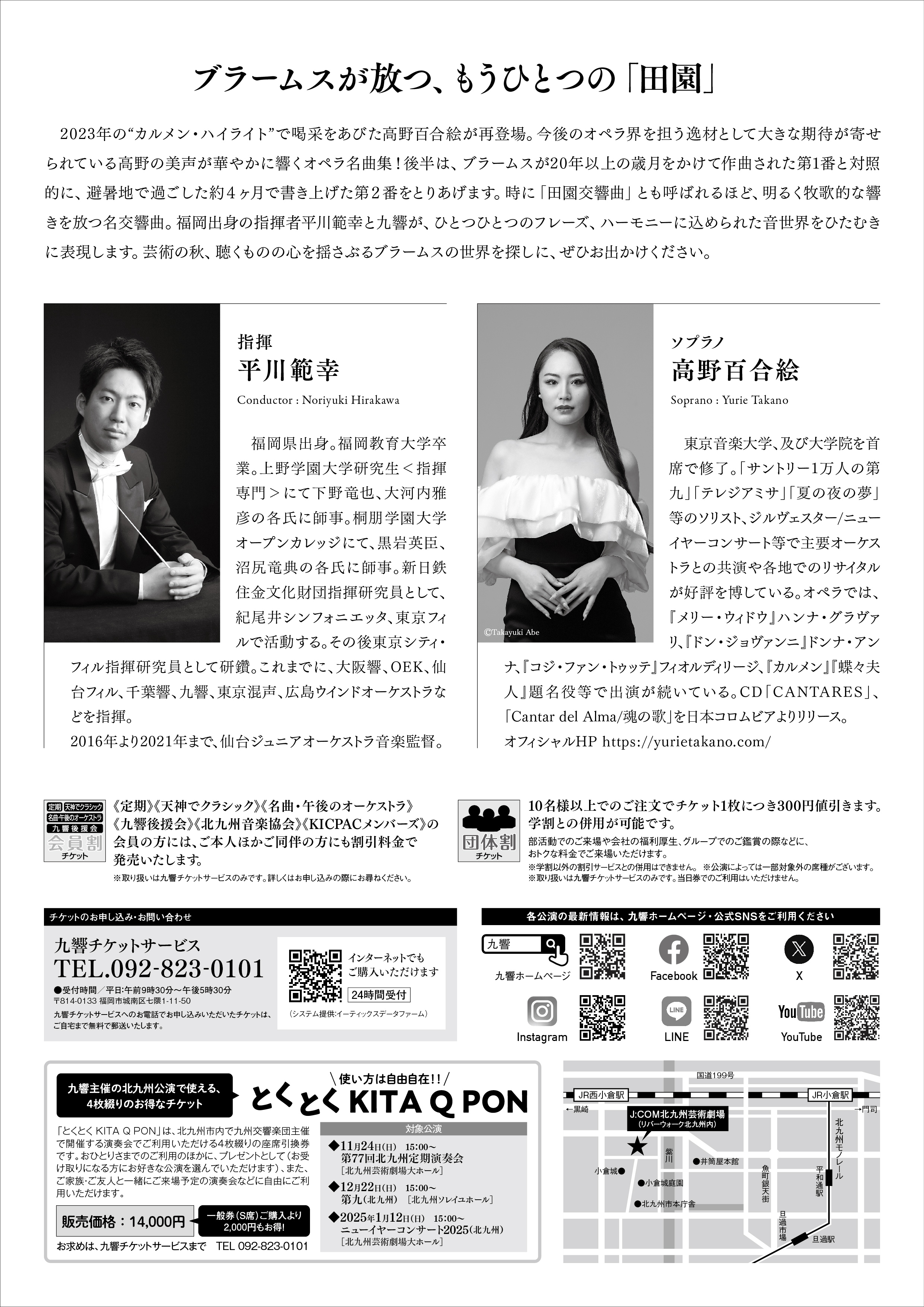 ドヴォルザーク/ 序曲「謝肉祭」作品92 オペラ『ルサルカ』より「月に寄せる歌」 プッチーニ/オペラ『蝶々夫人』より「ある晴れた日に」 ブラームス/交響曲 第2番 ニ長調 作品73 他 ※指揮者の交代について |