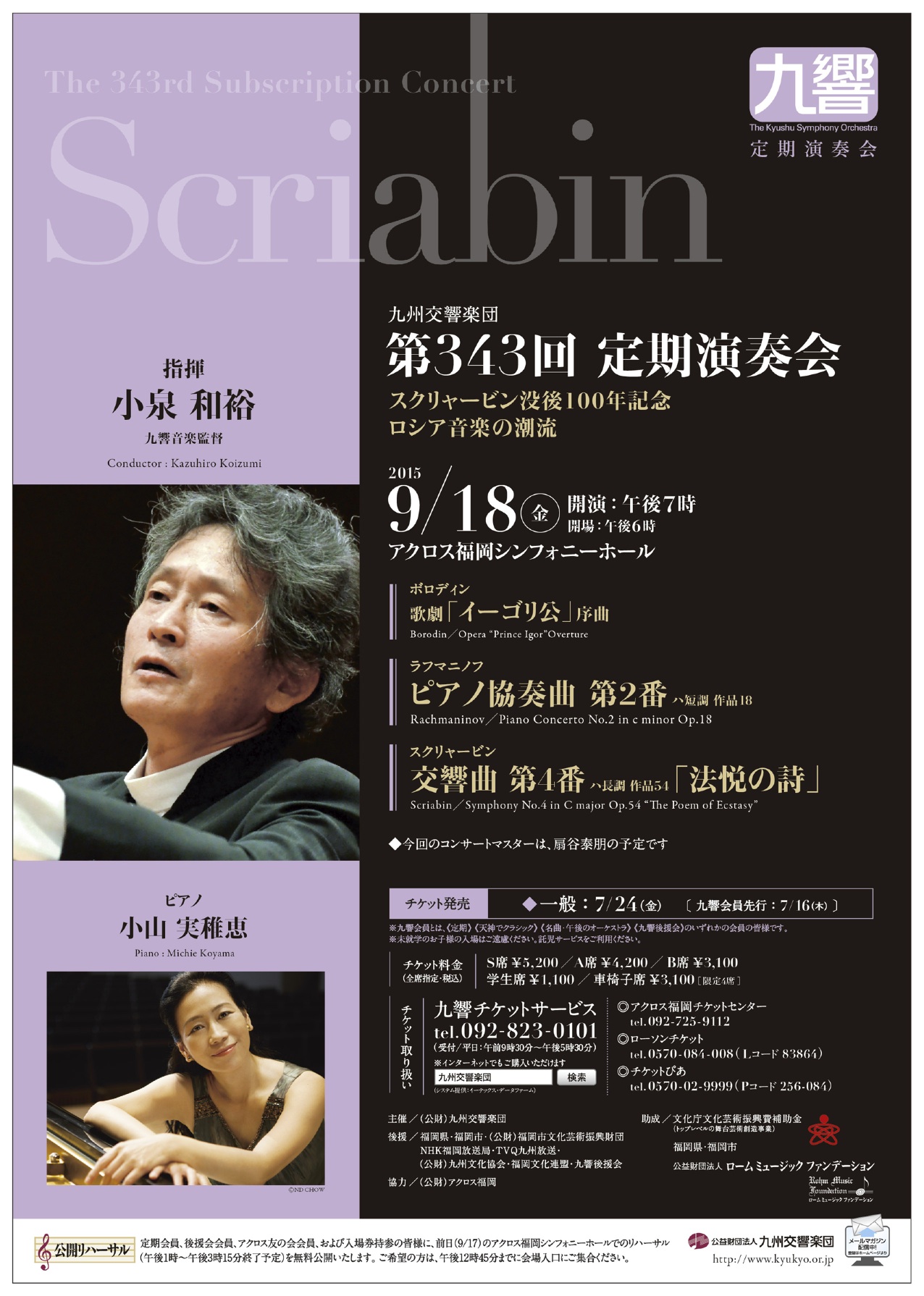 チケット発売日一般:7月24日(金)[九響会員先行:7月16日(木)]