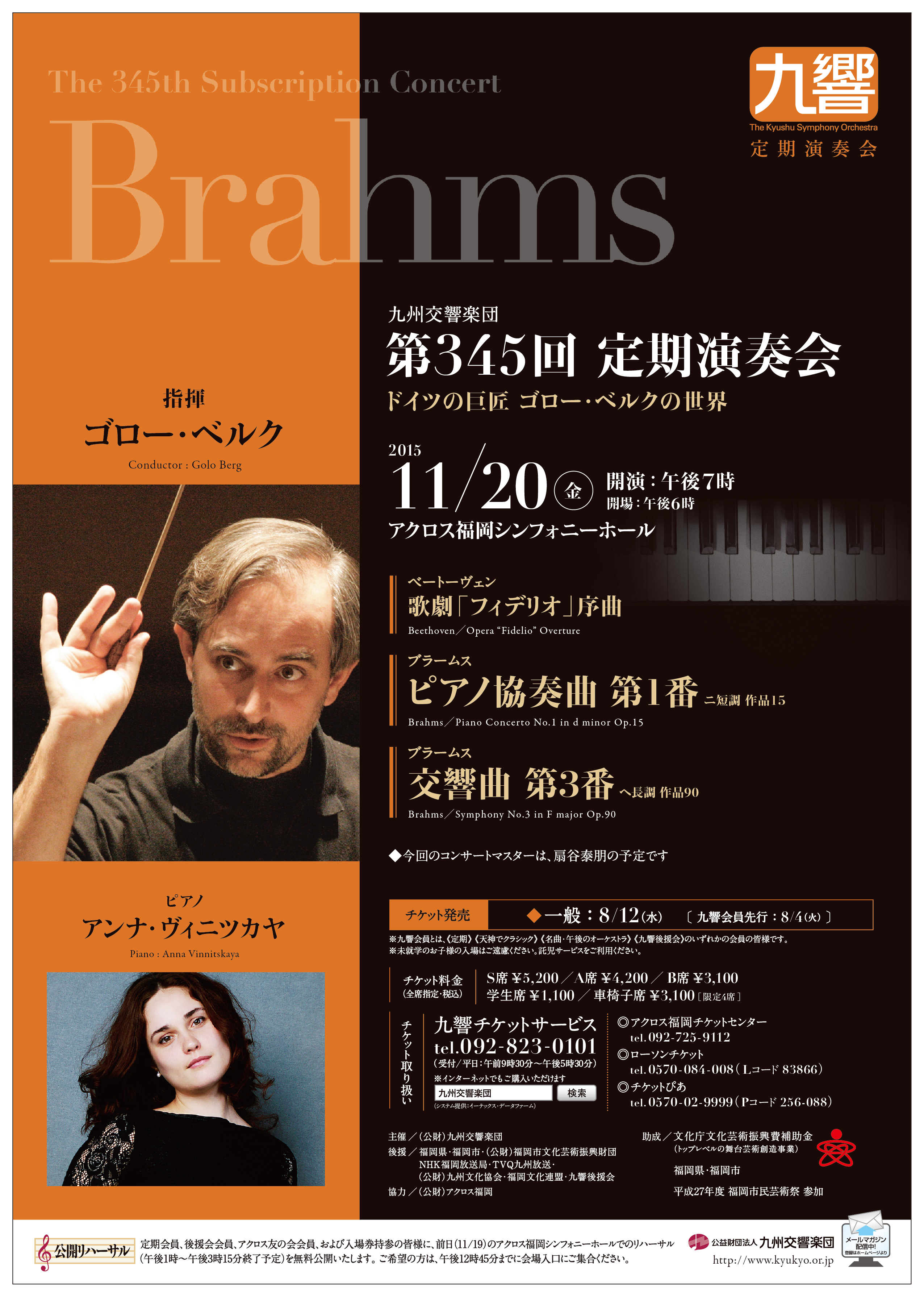 | チケット販売日 | 一般:8月12日(水)[九響会員先行:8月4日(火)] |