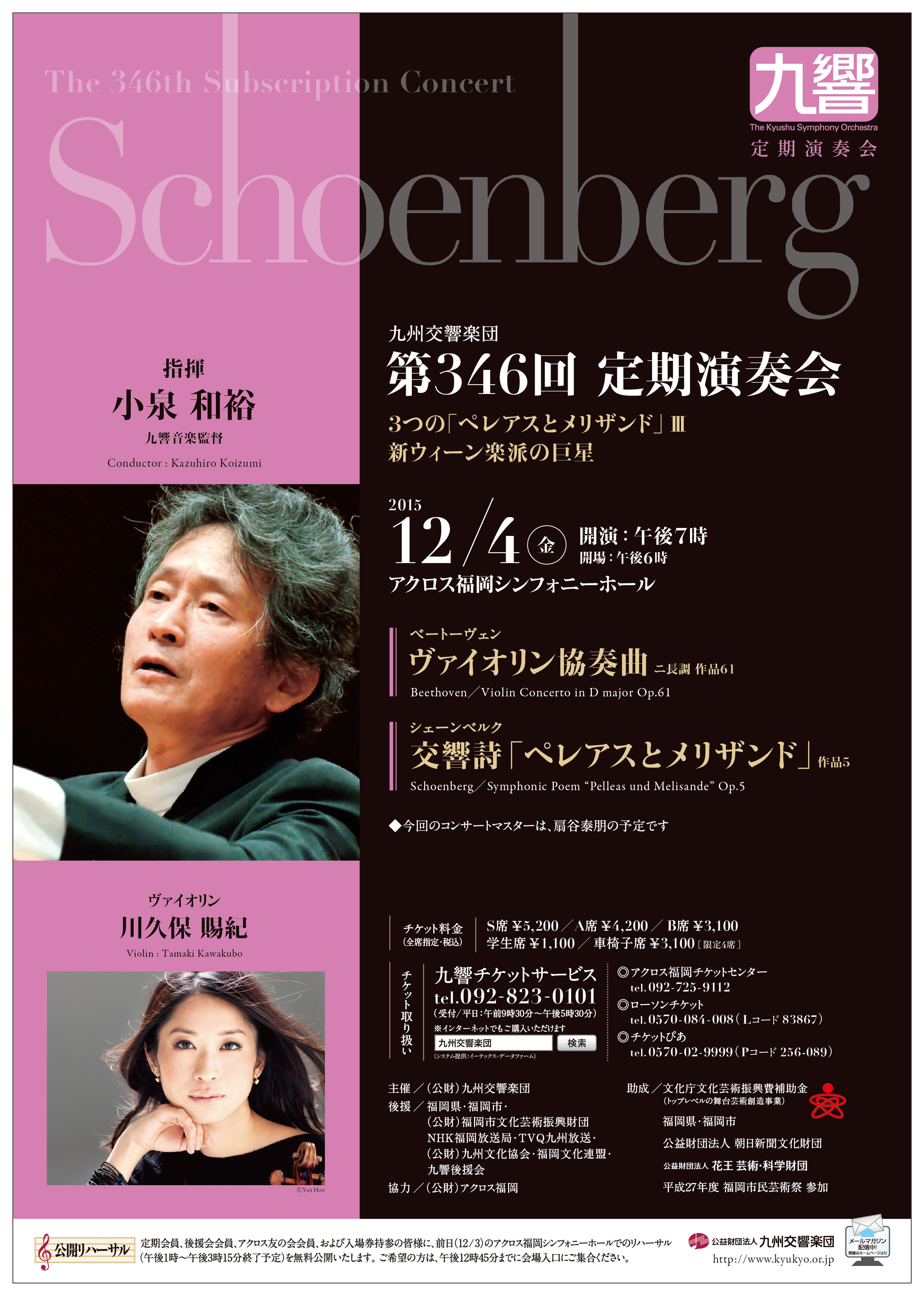 チケット発売日一般:8月18日(火)[九響会員先行:8月11日(火)]
