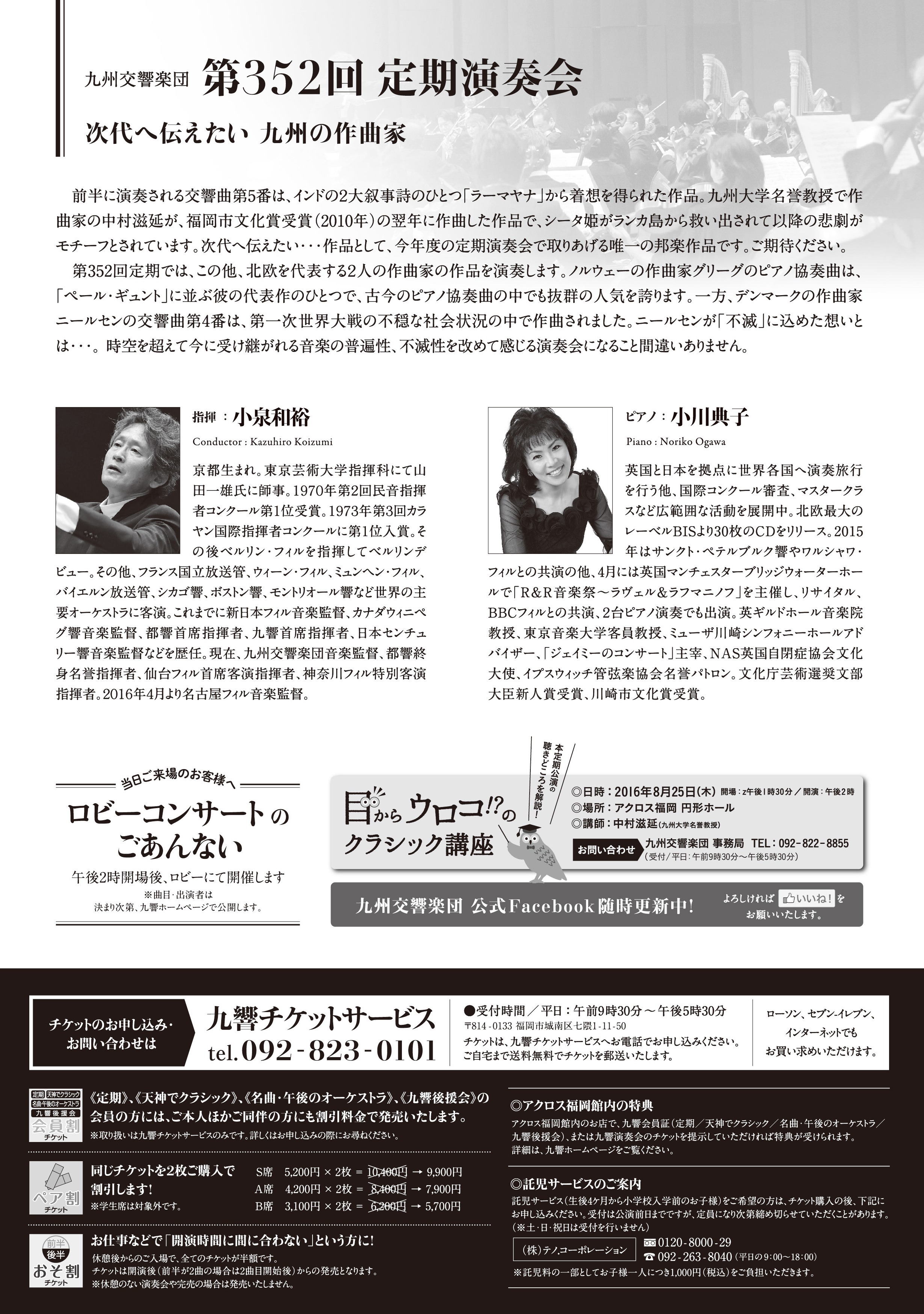 2010年福岡市文化賞受賞の中村滋延がインドの叙情詩「ラーマヤナ」から着想を得て作曲した交響曲の九州初演です。
