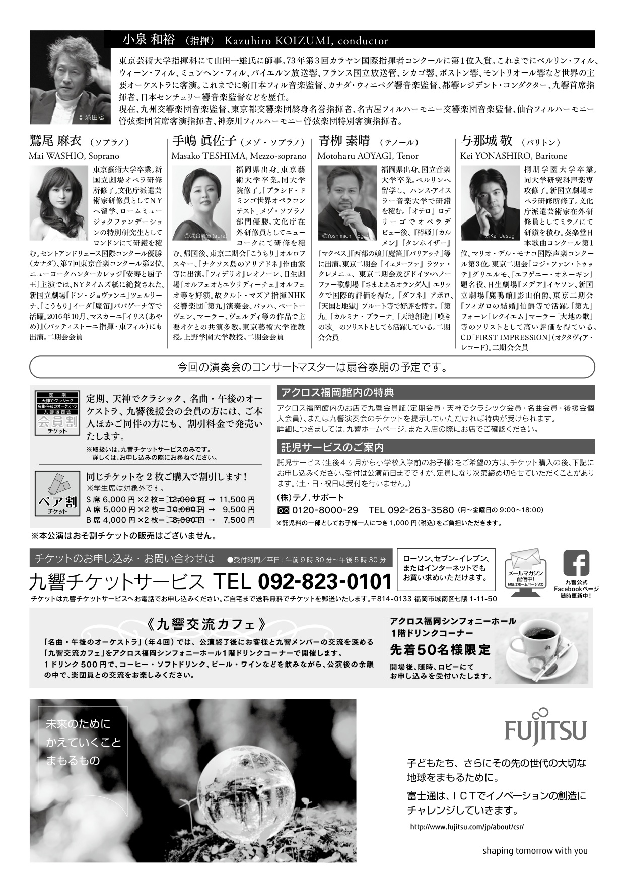 ソプラノ 鷲尾麻衣 メゾソプラノ 手嶋眞佐子 テノール 青栁素晴 バリトン 与那城敬 合唱 九響合唱団 |