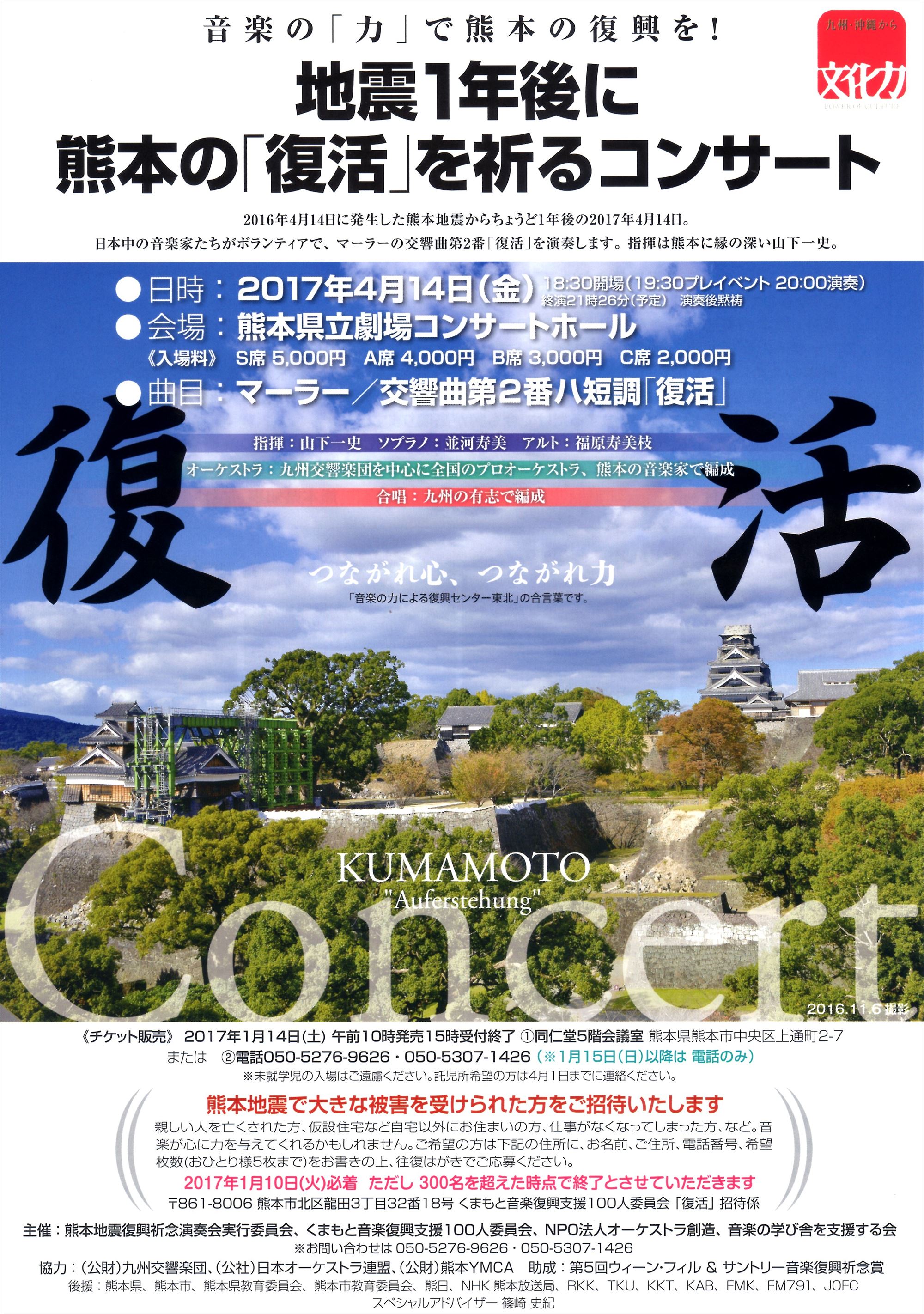地震1年後に熊本の「復活」を祈るコンサート 音楽の「力」で熊本の復興を!