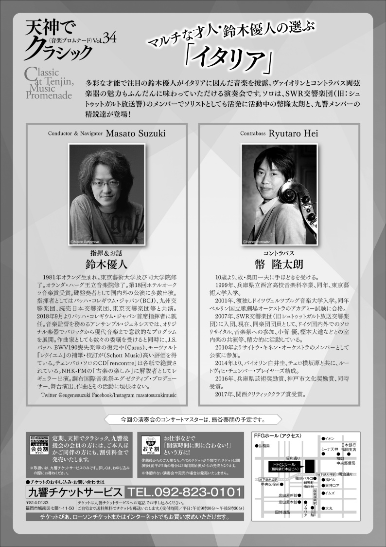 ヴィヴァルディ/「調和の霊感」第10番 RV580(4つのヴァイオリンのための協奏曲) ニーノ・ロータ/コントラバスと管弦楽のための協奏的ディヴェルティメント メンデルスゾーン/交響曲 第4番 イ長調「イタリア」作品90 |