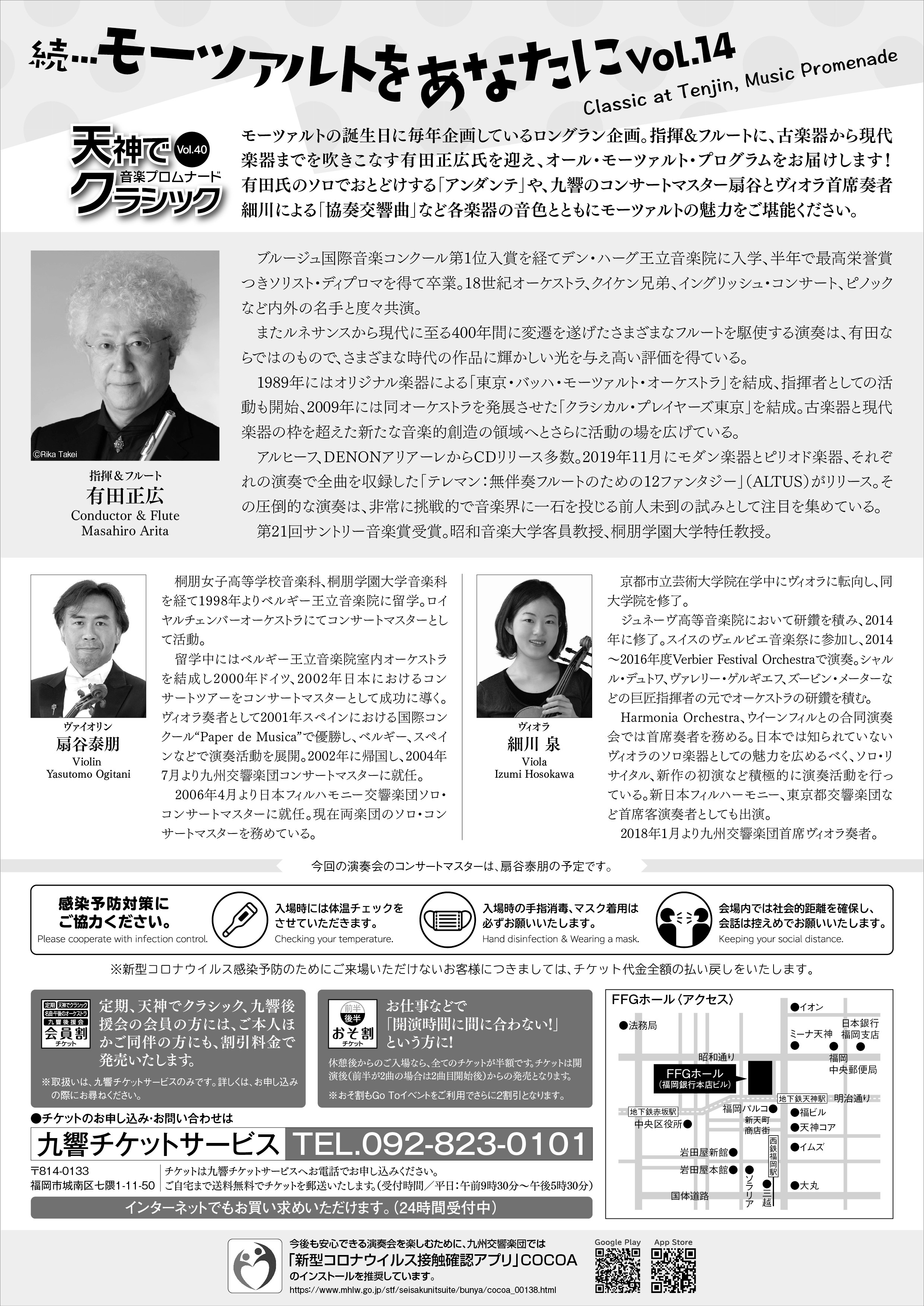 モーツァルト/ディヴェルティメント ヘ長調 K.138 モーツァルト/ヴァイオリンとヴィオラのための協奏交響曲 変ホ長調 モーツァルト/フルートと管弦楽のためのアンダンテ ハ長調 K.315 モーツァルト/交響曲第35番 ニ長調 K.385「ハフナー」 ※当初の予定より出演者・プログラムに変更がございます |