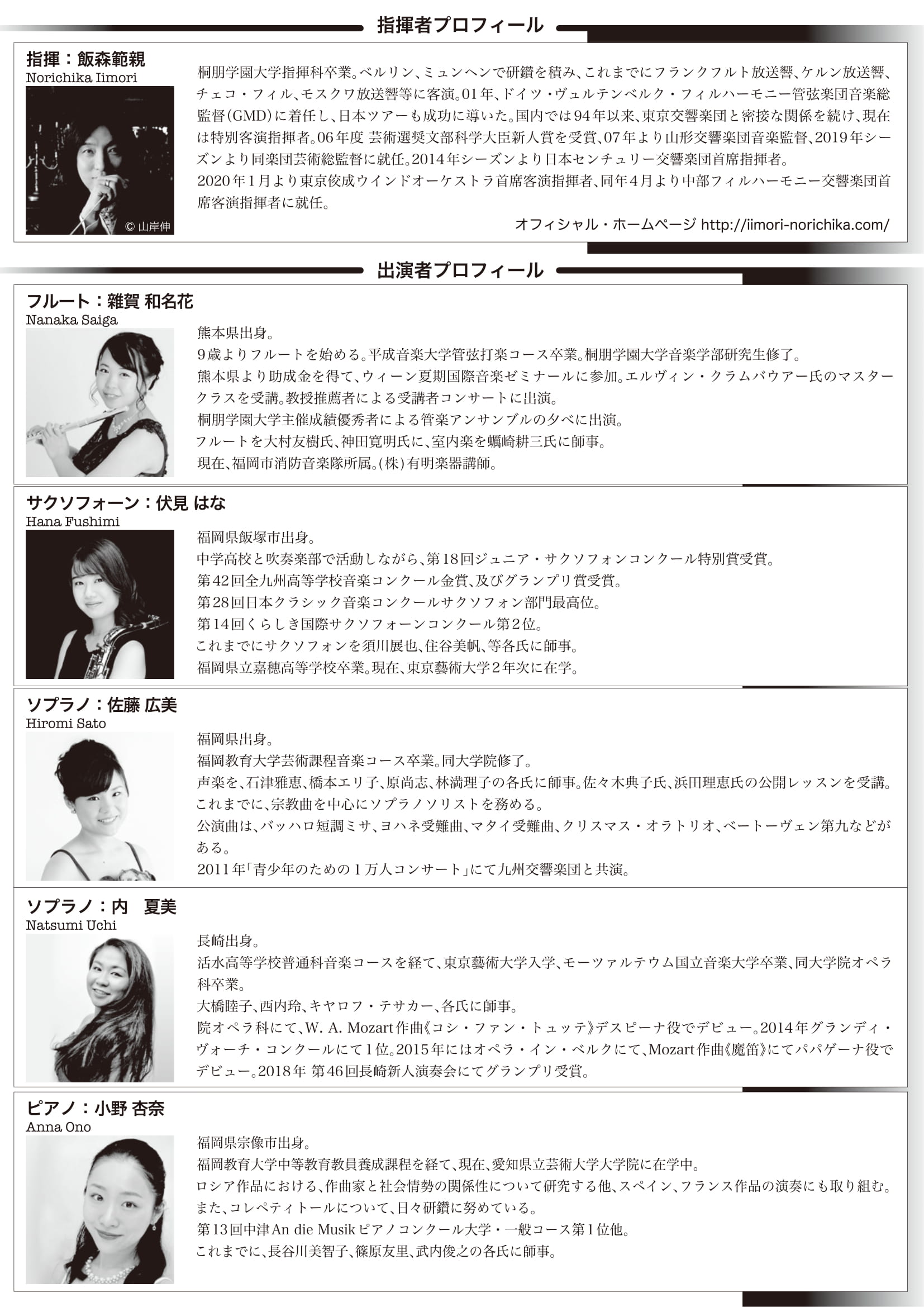 フルート 雜賀和名花 サクソフォーン 伏見はな ソプラノ 佐藤広美 ソプラノ 内夏美 ピアノ 小野杏奈 |