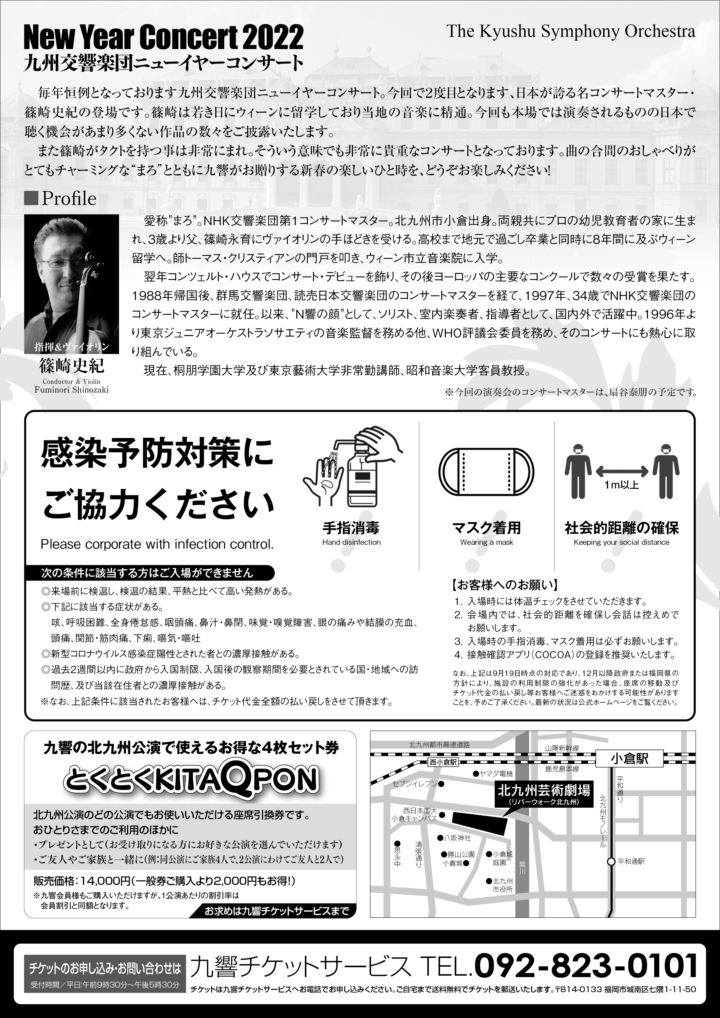J.シュトラウス Ⅱ/ポルカ「恋と踊りに熱狂」 J.シュトラウス Ⅱ/ポルカ「花祭り」 J.シュトラウス Ⅱ/ポルカ「ハンガリー万歳」 J.シュトラウス Ⅱ/ピチカート・ポルカ J.シュトラウス Ⅱ/ワルツ「ウィーンの森の物語」 J.シュトラウス Ⅱ/皇帝円舞曲 J.シュトラウス Ⅱ/ワルツ「美しく青きドナウ」 ラフ/「ダーメ・コボルト」序曲 ラフ/カヴァティーナ(ヴァイオリン独奏) フバイ/ヘイ!カティ(ヴァイオリン独奏) ※曲目はやむを得ず変更となる場合があります。ご了承ください。 ※演奏順は当日のプログラムにて発表いたします。 |