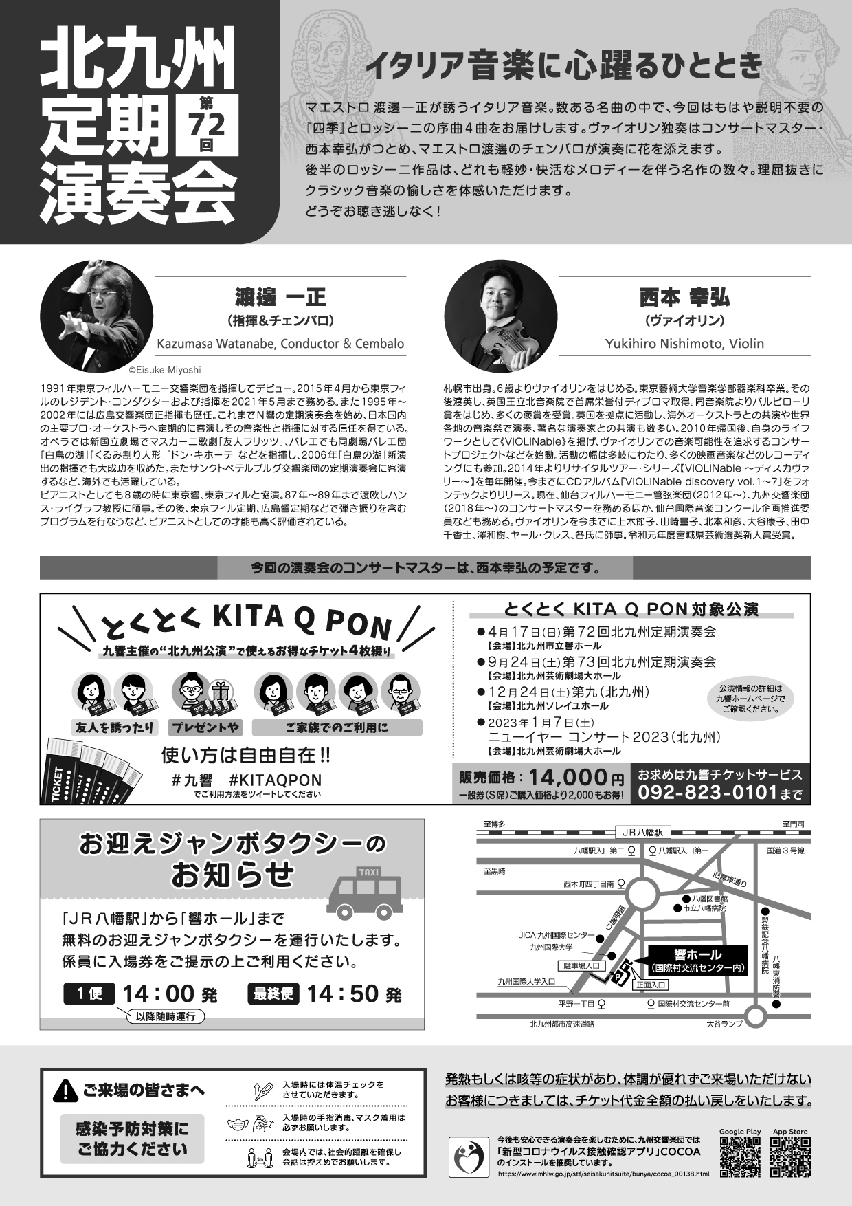 ヴィヴァルディ/ヴァイオリン協奏曲集「四季」 ロッシーニ/ 歌劇「アルジェのイタリア女」序曲 ロッシーニ/ 歌劇「絹のはしご」序曲 ロッシーニ/ 歌劇「ブルスキーノ氏」序曲 ロッシーニ/ 歌劇「セミラーミデ」序曲 ※イベント開催時のチェックリストはこちら |