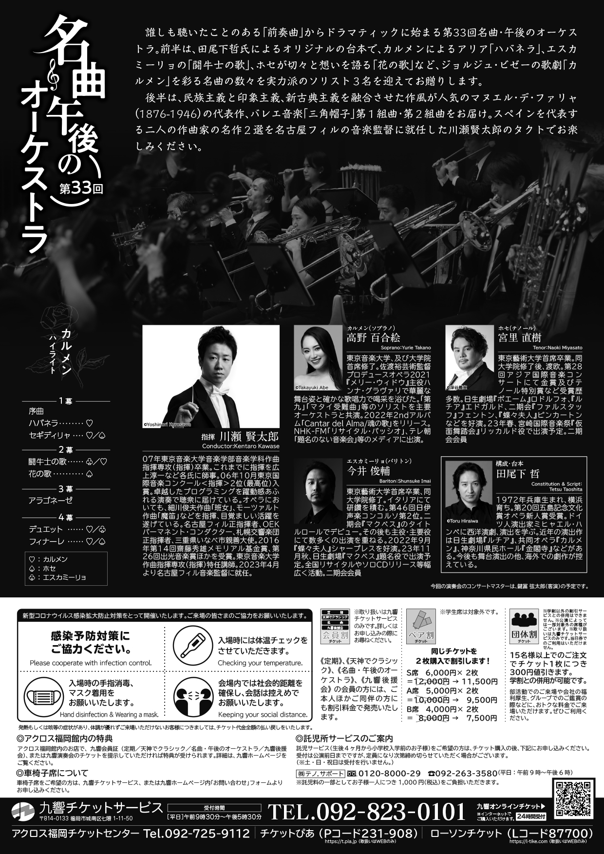 ソプラノ 高野 百合絵 テノール 宮里 直樹 バリトン 今井 俊輔 構成・台本 田尾下 哲 |