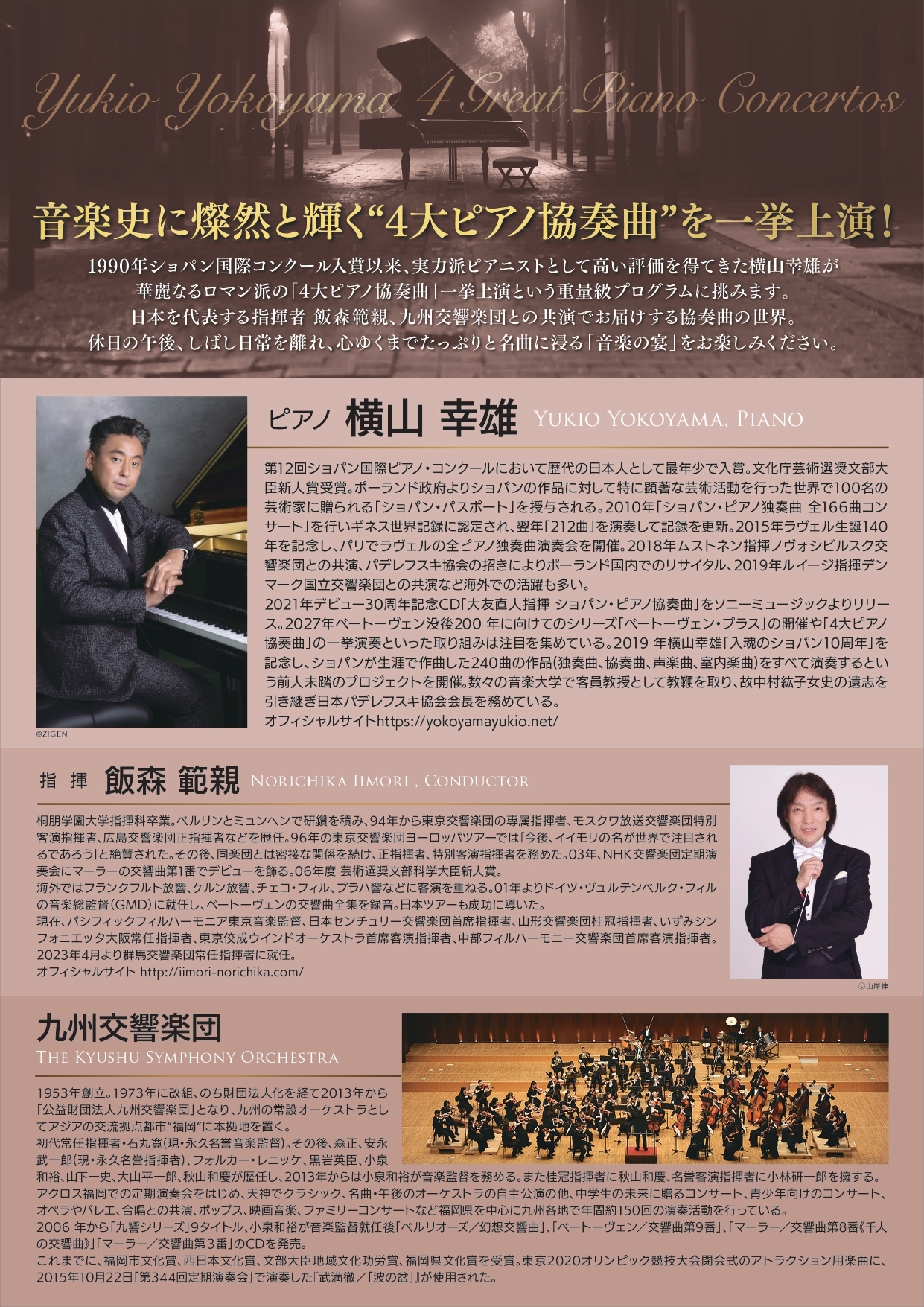 チケット料金 S席 8,000円 A席 7,000円 B席 6,000円(学生 3,000円) *学生券は小学生~大学生(25歳以下)の方が対象です。 *学生券は「アクロス福岡チケットセンター」または「エムアンドエム」にてお買い求めください(要学生証)。 ※未就学のお子さまの入場はご遠慮ください。(有料託児サービスあり・要予約)