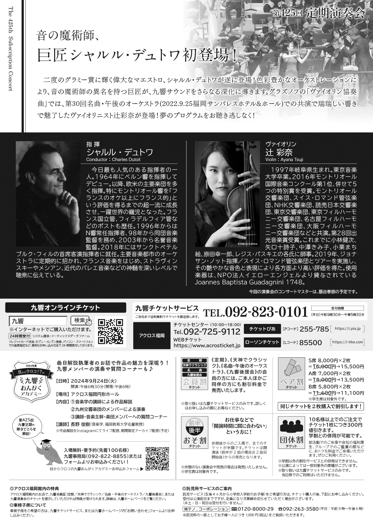 第425回定期演奏会 音の魔術師、巨匠シャルル・デュトワ初登場! 九響主催