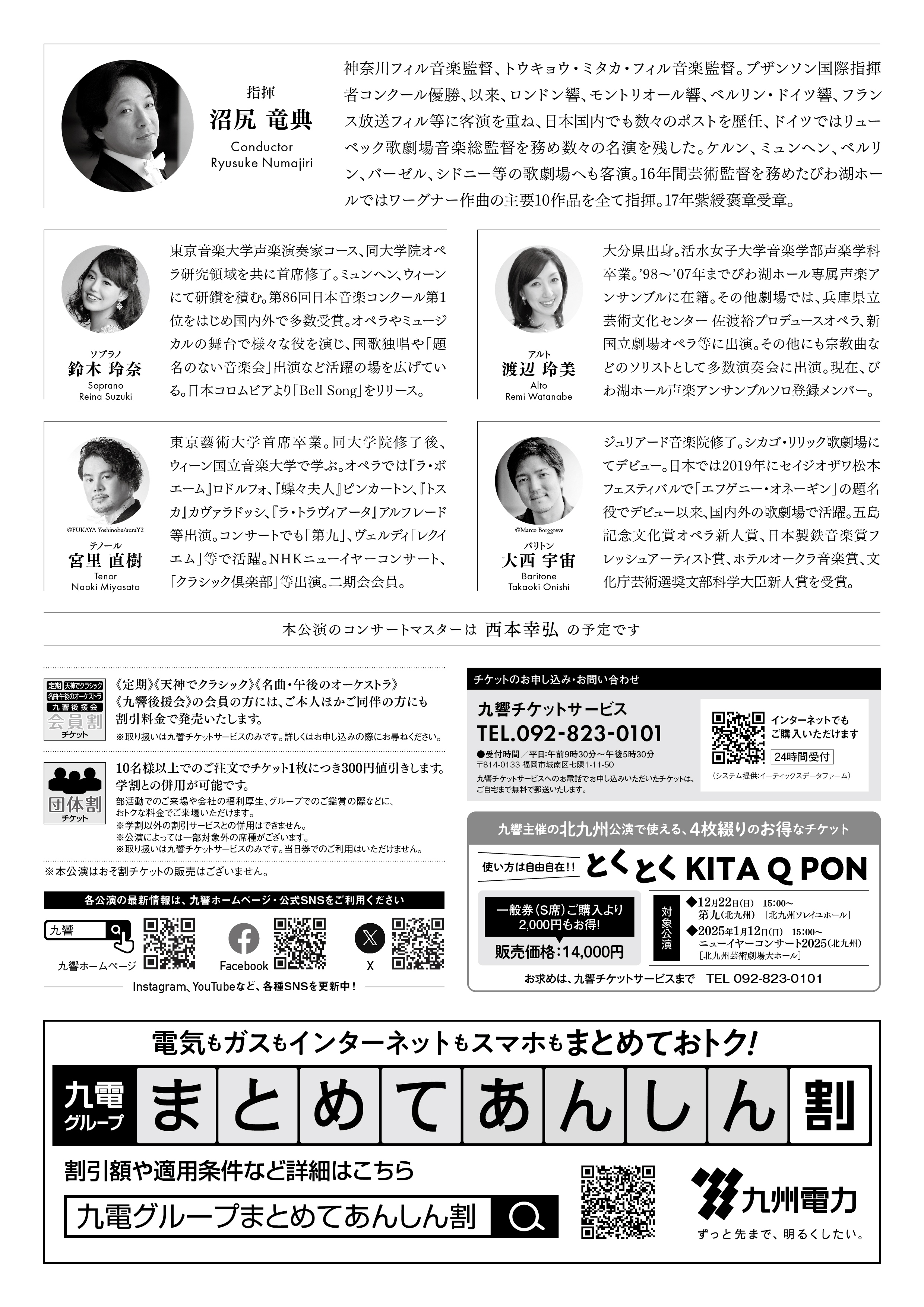 ソプラノ 鈴木 玲奈 アルト 渡辺 玲美 テノール 宮里 直樹 バリトン 大西 宇宙 合唱 北九州市民フロイデコール |