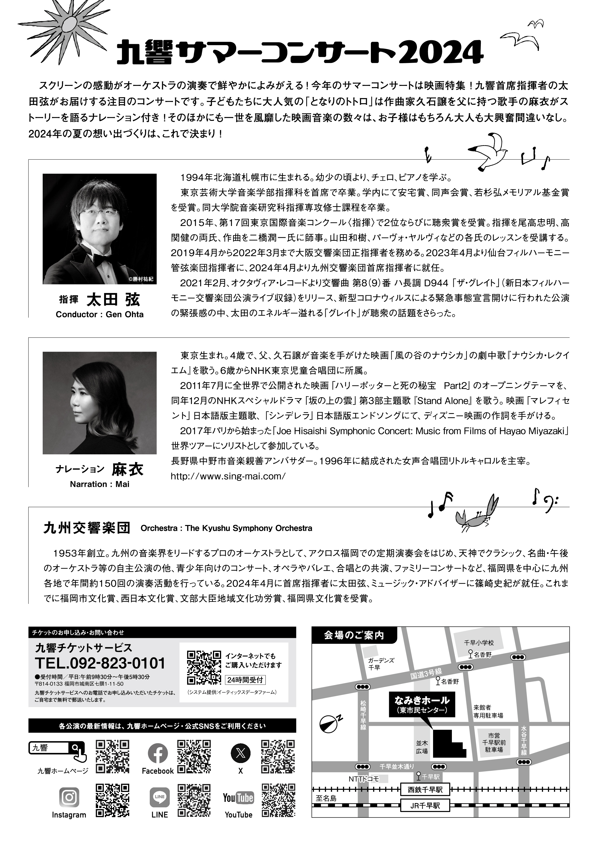 チケット料金 ≪全席指定≫ 一般 3,000円、学生 1,000円、 未就学児(3才未満入場不可) 保護者1名につき1名膝のうえに限り無料 ※座席が必要な場合は有料(学生料金)