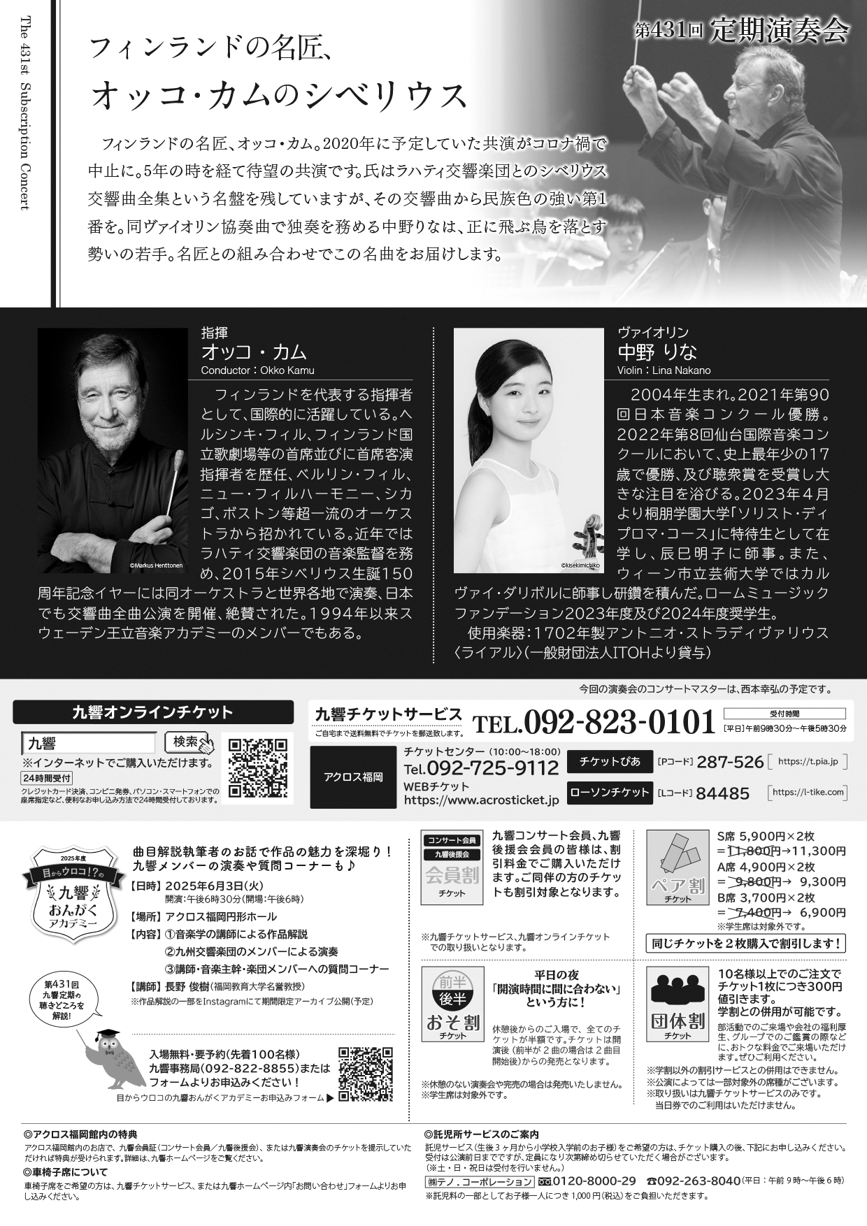 チケット料金 S席:5,900円、A席:4,900円、B席:3,700円、学生:1,500円 車椅子席(限定4席):3,700円 ※学生料金でのお求めはB席のみ対象となります※未就学児入場不可