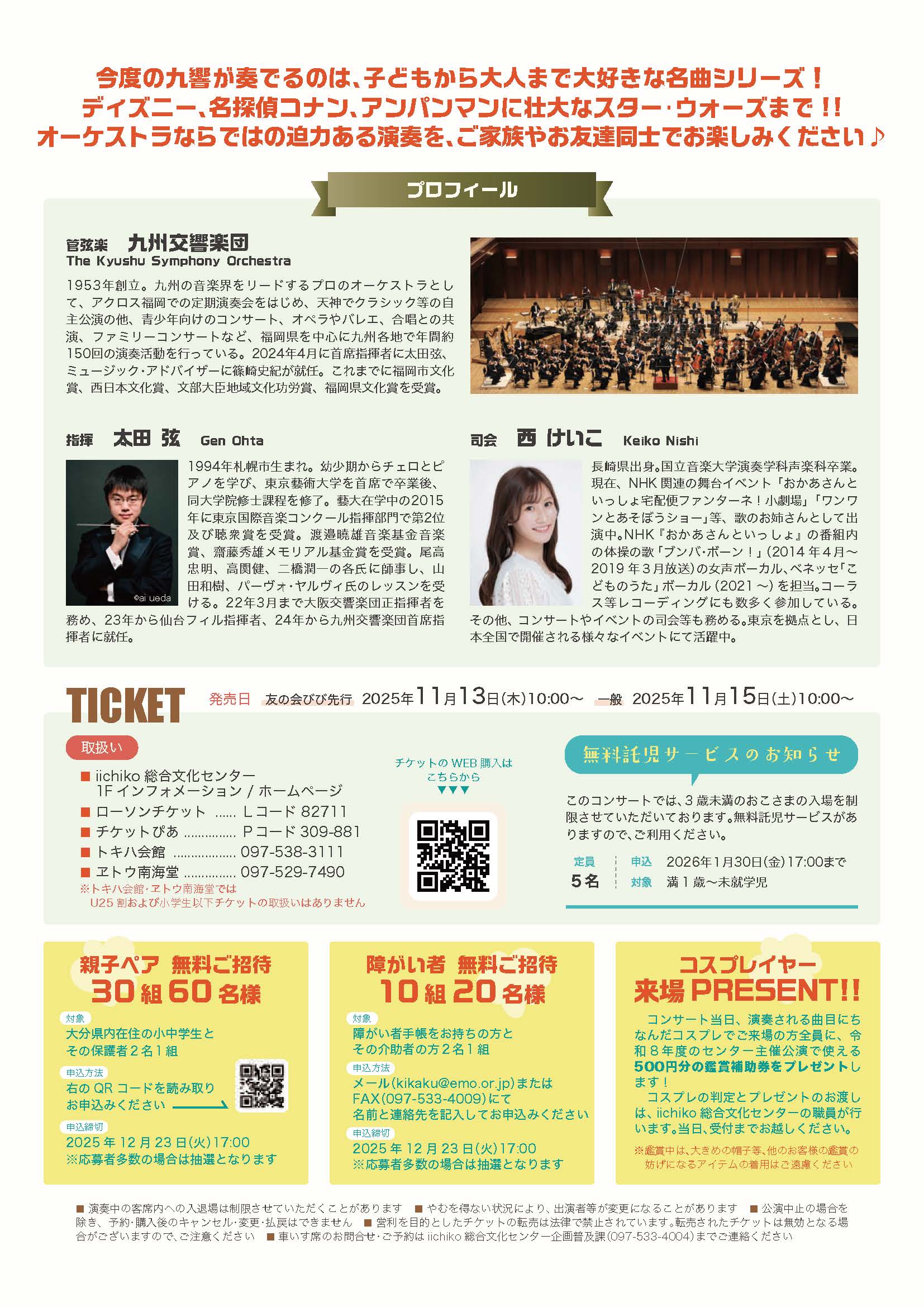 無料託児サービス(要予約:2026年1月30日(金)17:00まで/満1歳~未就学児童/先着5名)および車いす席のお問合せ・ご予約はiichiko総合文化センター企画普及課まで