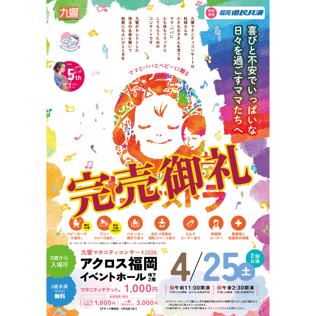 ※ベビーカー席、フリースペース席をご希望の方は、九響チケットサービスよりお申込みください