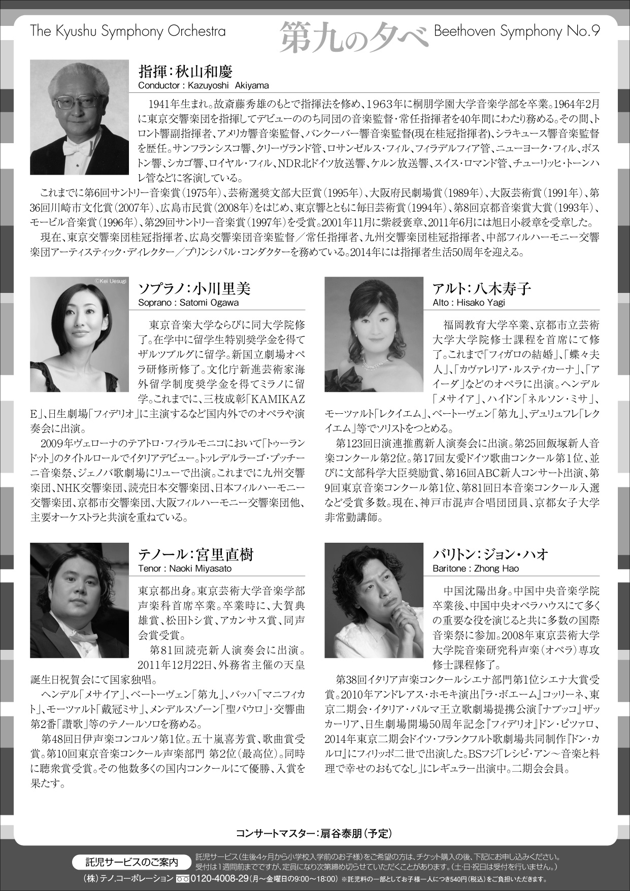 ソプラノ 小川里美 メゾ・ソプラノ 八木寿子 テノール 宮里 直樹 バリトン ジョン・ハオ |