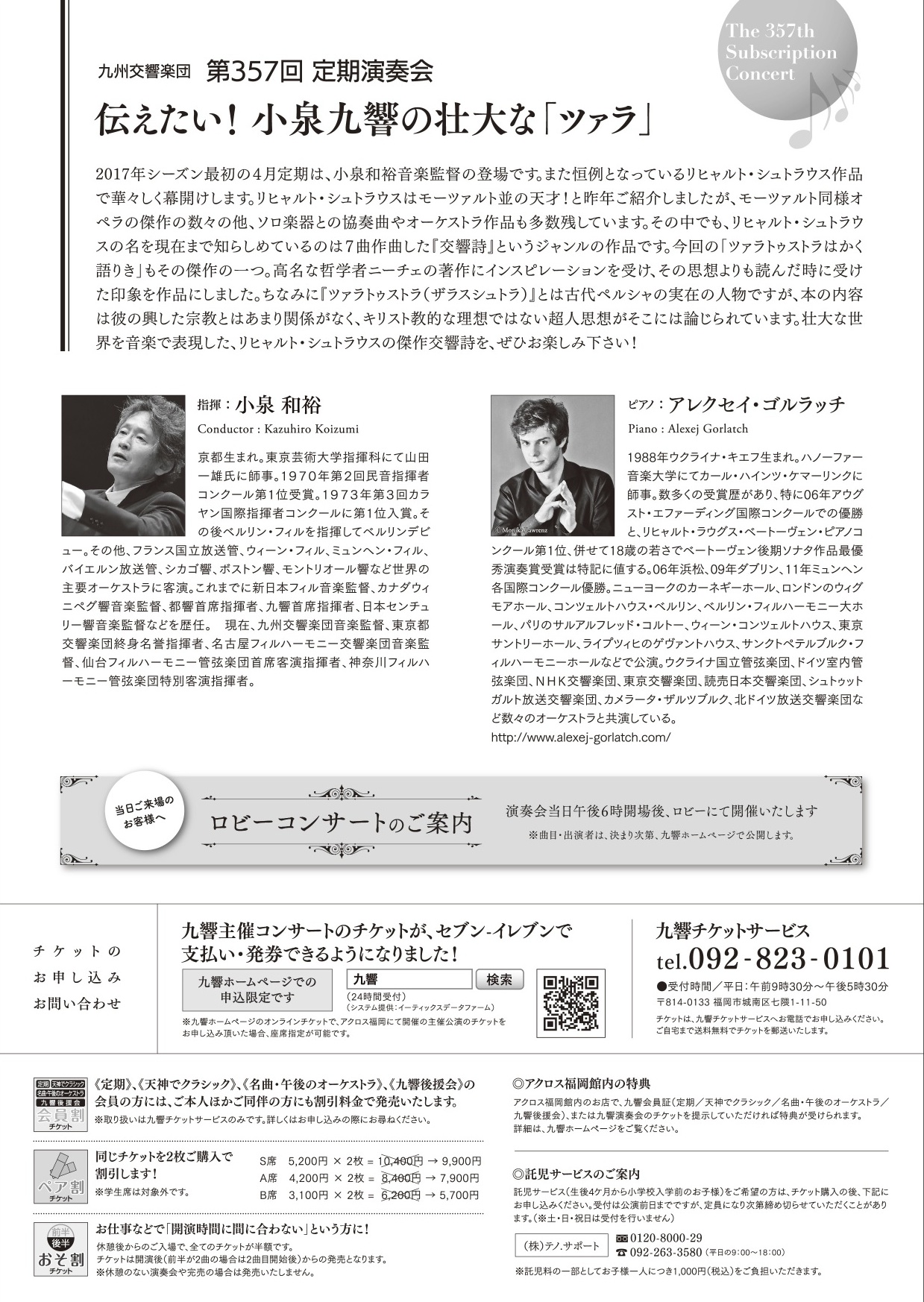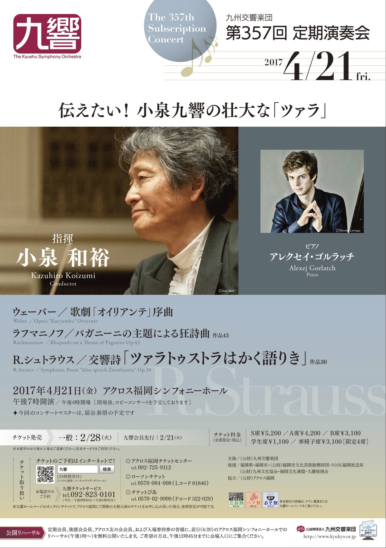 ウェーバー/歌劇「オイリアンテ」 序曲 ラフマニノフ/パガニーニの主題による狂詩曲 作品43 R.シュトラウス/交響詩「ツァラトゥストラはかく語りき」 作品30 |