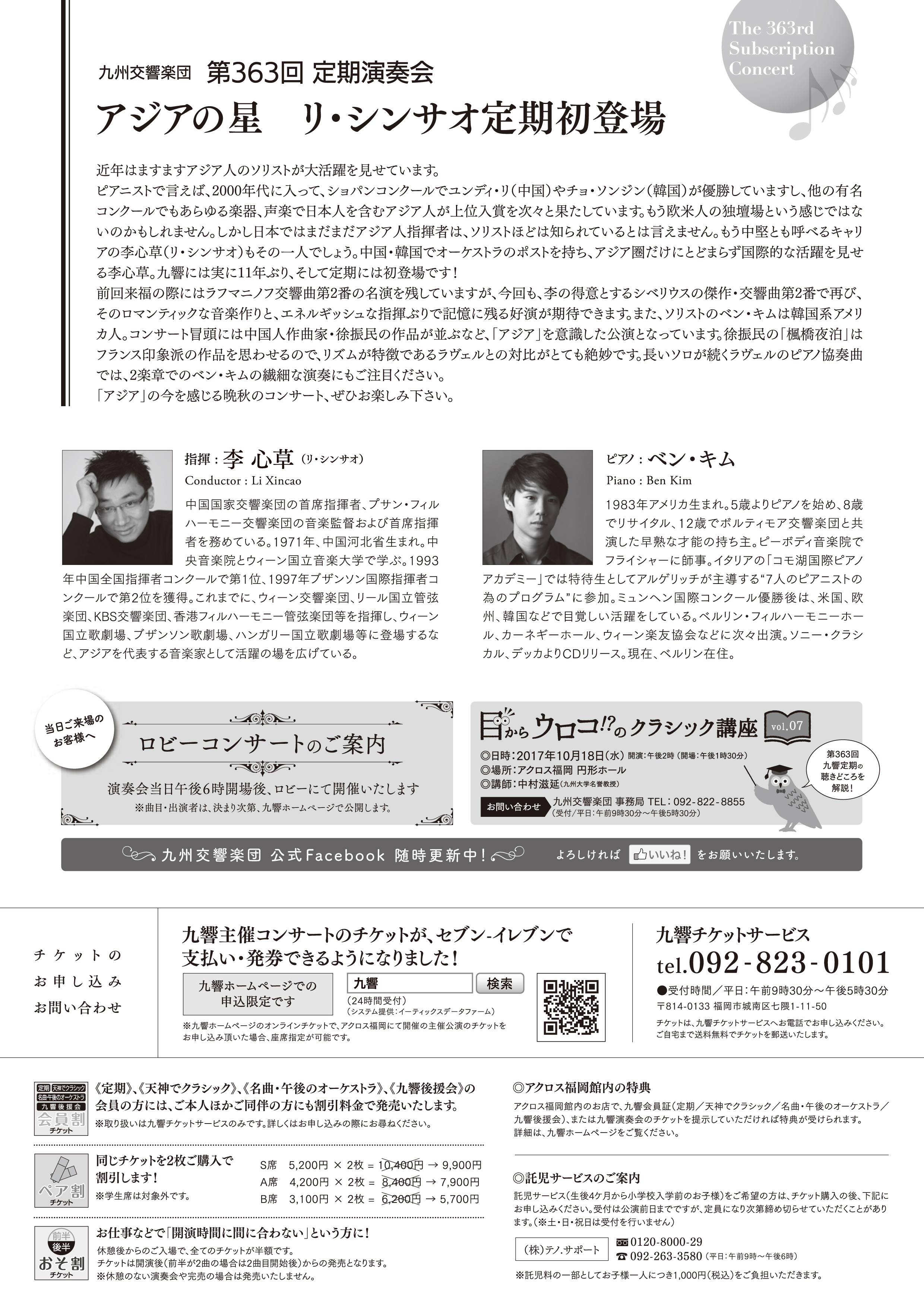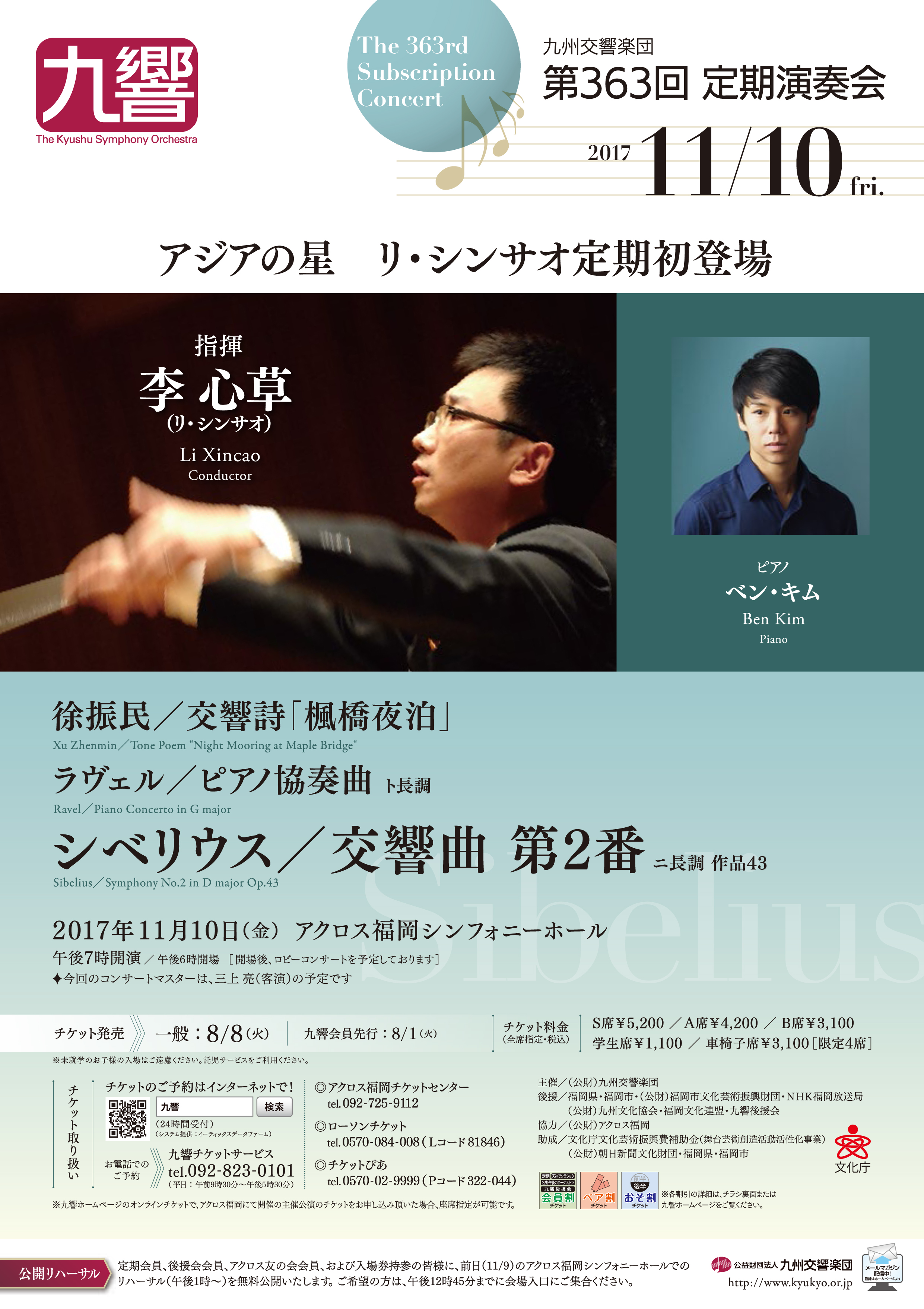 第363回定期演奏会 アジアの星 リ・シンサオ定期初登場 九響主催