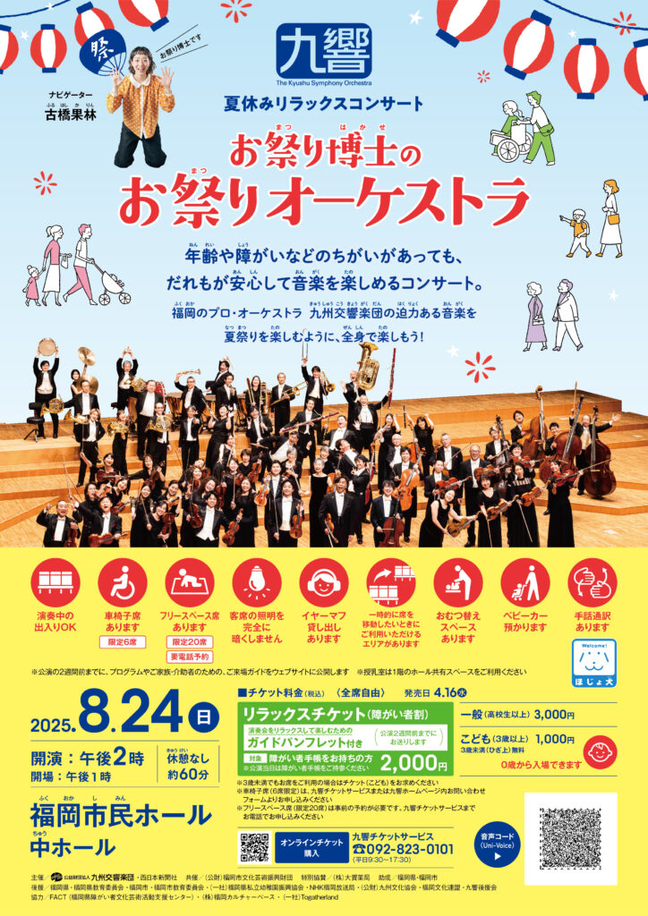九州交響楽団では、8月24日(土)開催の「夏休みリラックスコンサート」において、ホール内に手話通訳者を配置し、前方の一部座席を「手話通訳利用者優先エリア」として設けることとなりましたので、お知らせいたします。
