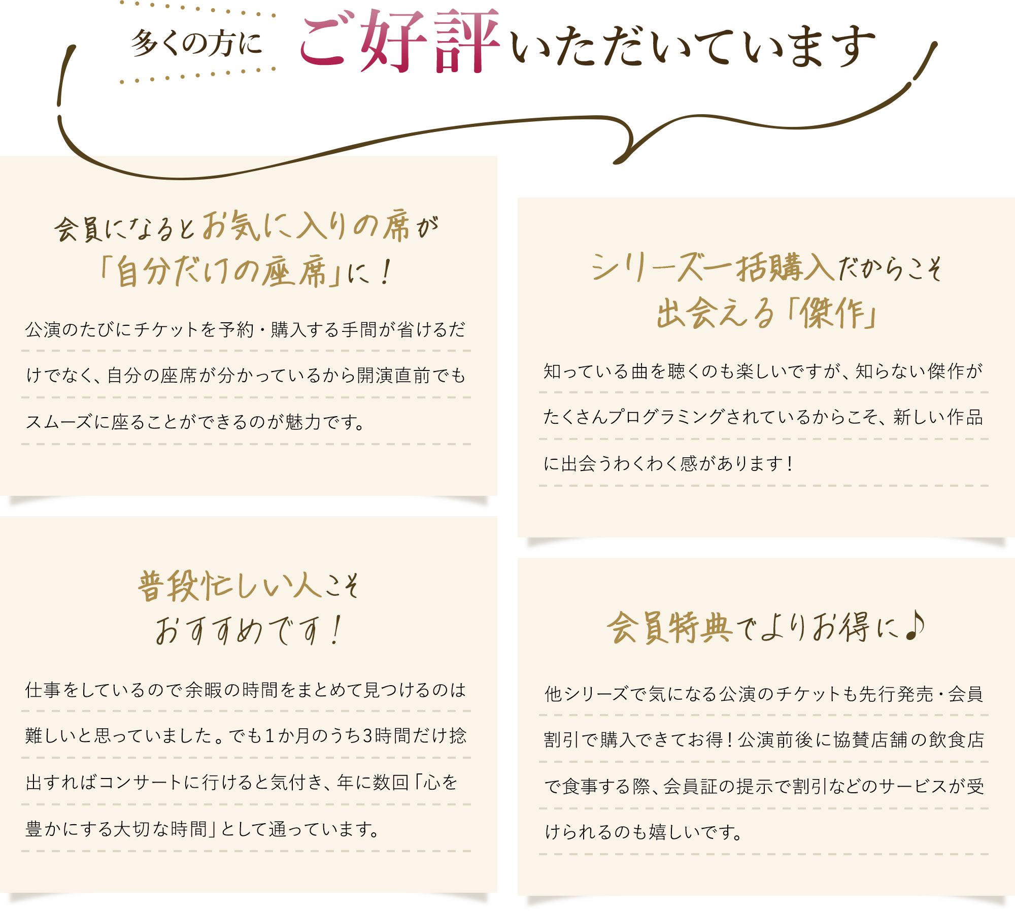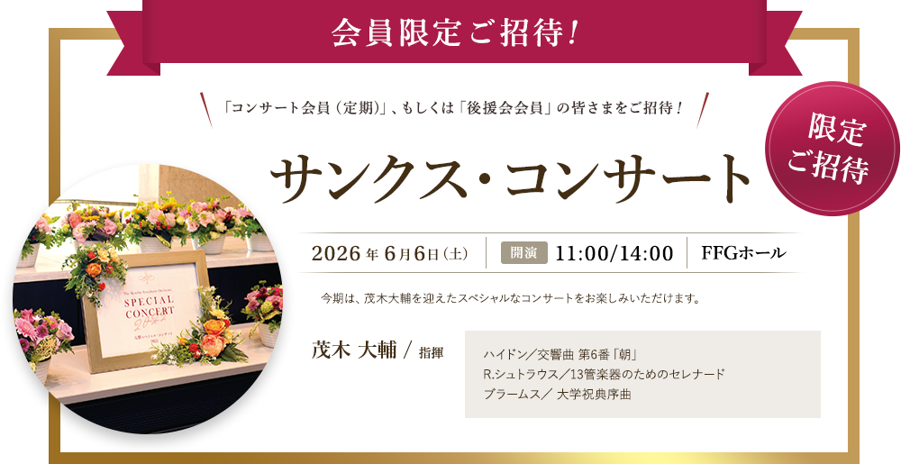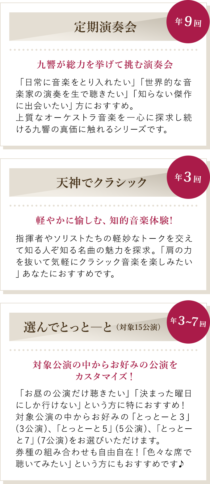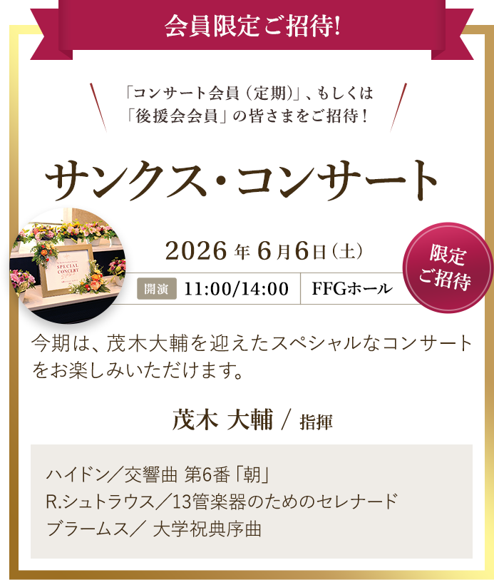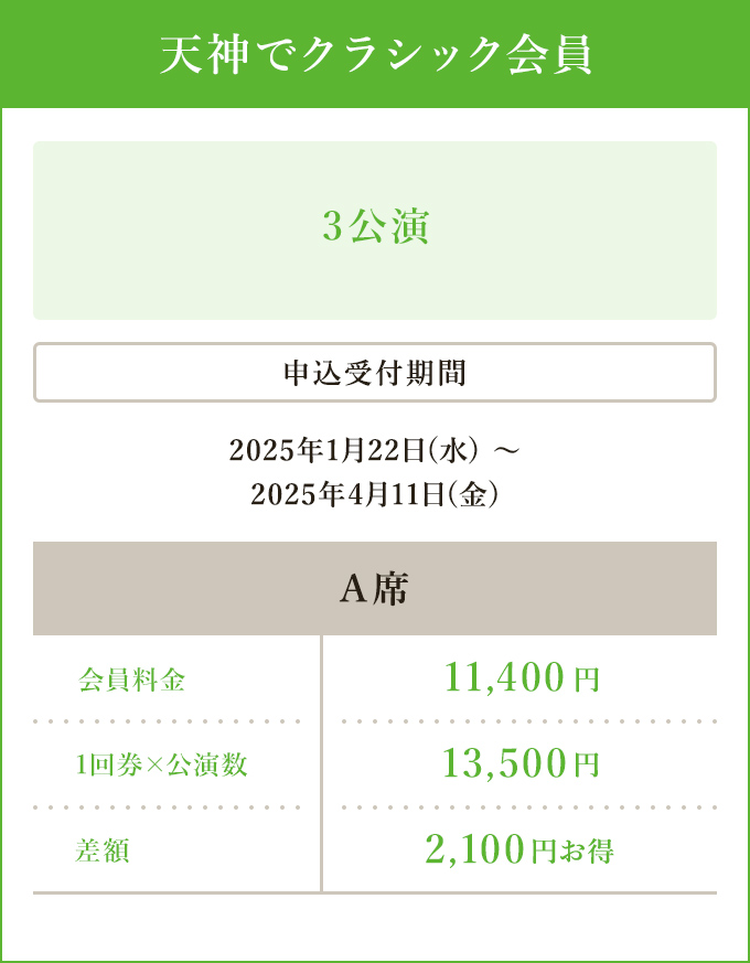 チケット料金が割引になるだけでなく、コンサート会員としての様々な特典も受けられるのでとってもお得です。