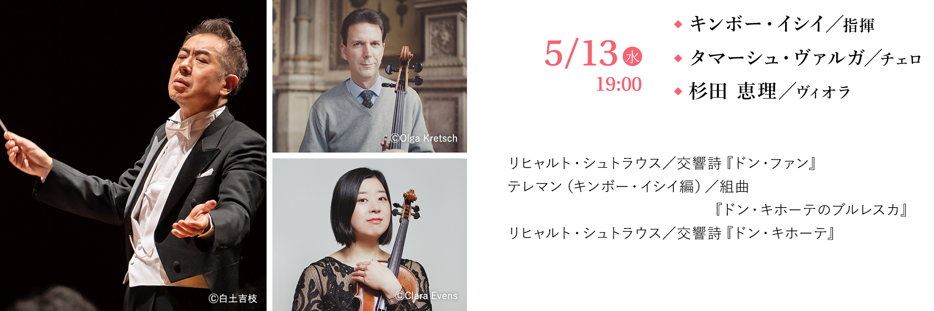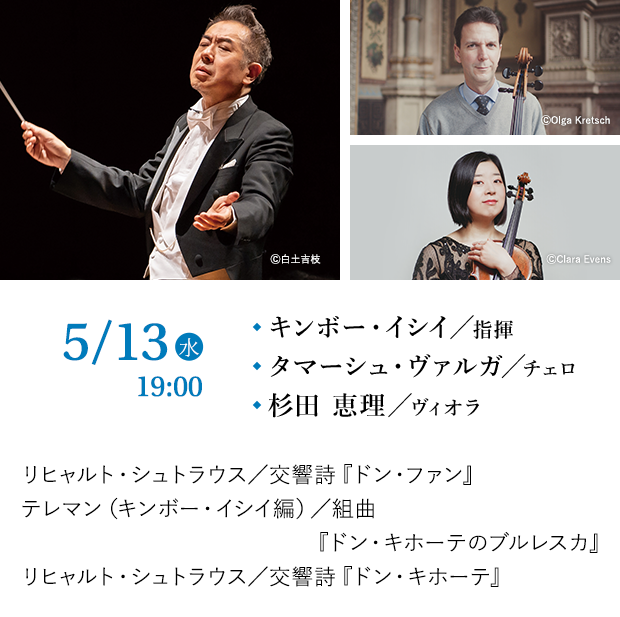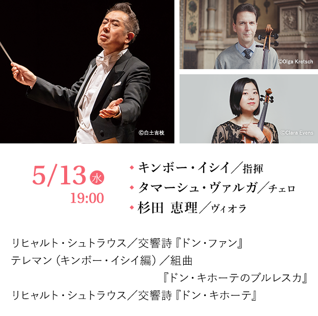 知らぬ者はいない2人の“ドン”の冒険物語。片や好色家、片や妄想家の変わり者。R.シュトラウスの作曲技法が大管弦楽を個性豊かな人物や舞台背景に変えていく。ドン・キホーテ役のチェロはウィーン・フィル首席タマーシュ・ヴァルガ、従者サンチョ・パンサはクァルテット・ベルリン東京創設時のヴィオラ杉田恵理。九響と共演を重ねるキンボーもウィーンに縁のある指揮者。2人のドンの間に吹き抜けるウィーンの風にも期待したい。
