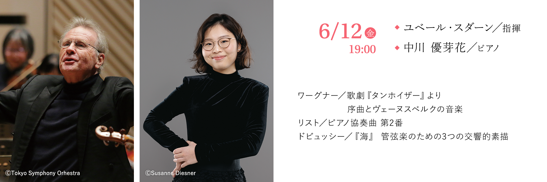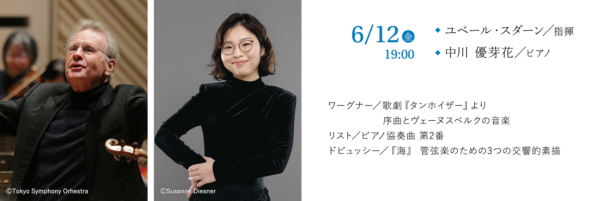 一見、水と油に見えるドイツのワーグナーとフランスのドビュッシー。しかしドビュッシーはかつて熱心なワーグナー支持者だった。その後はワーグナーの影響から抜け出そうとしたが。そしてリストは自身の娘婿であるワーグナーの『トリスタンとイゾルデ』を研究し、自らの声であるピアノに編曲した。次々と時の天才たちを打ちのめしたワーグナー旋風。毎回素晴らしい共演となっているスダーンと共に。