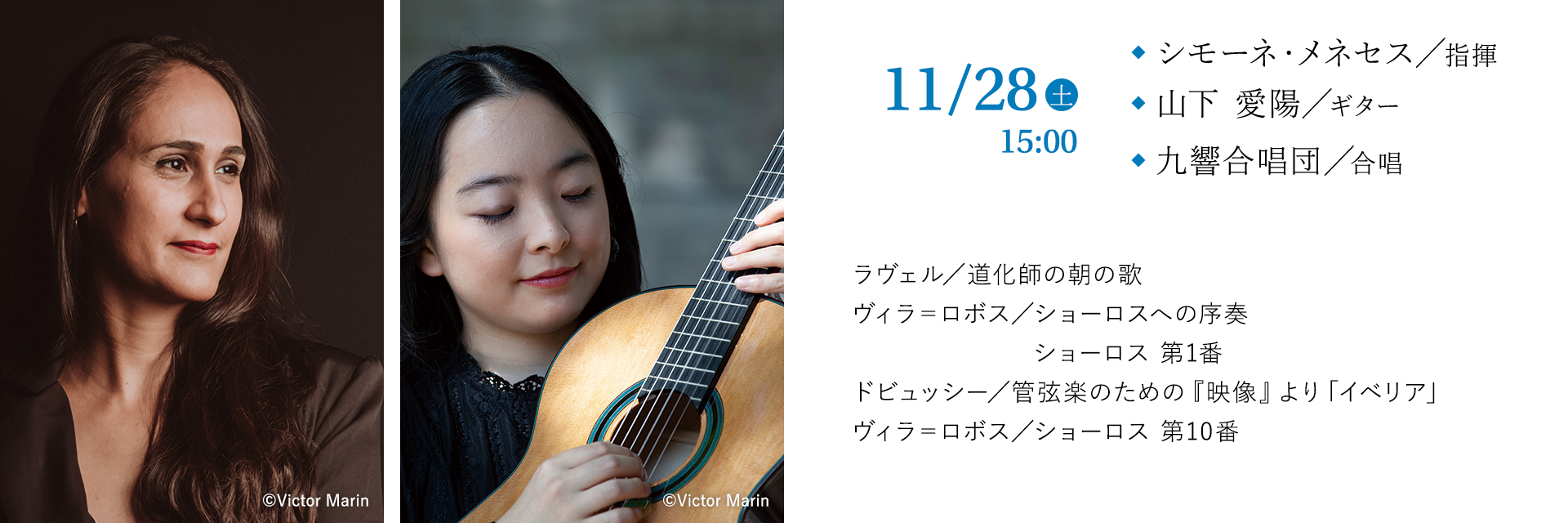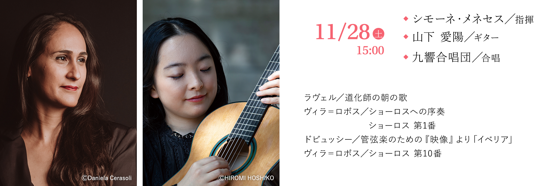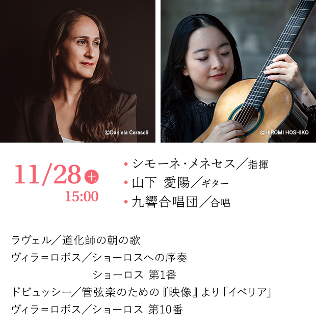 作曲家、ヴィラ=ロボスの連作「ショーロス」はブラジルの民衆音楽、ショーロに源泉があり、路上で歌われるその音楽にはギターが欠かせない。ショーロスはヴィラ=ロボスがフランス滞在中に作曲されたのだが、今回演奏するフランスの2作品にはギターとは切っても切れない関係が。ヴィラ=ロボスのスペシャリストであり現在、フランスで活動するシモーネ・メネセスだからこそのプログラムだ。合唱も加わりブラジルの大地そのものが歌うごときショーロス第10番は必聴。