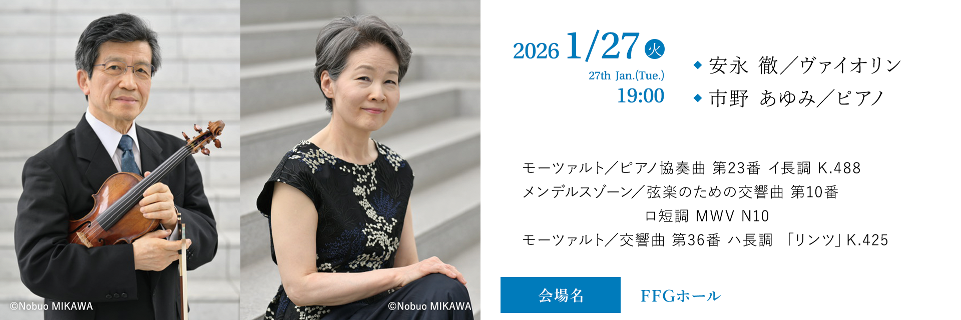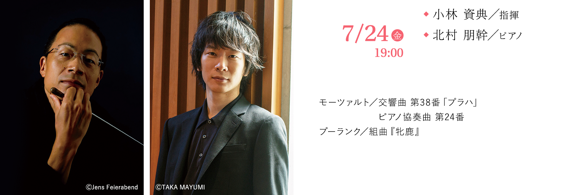 「修道僧と悪童が同居している」と称されるパリジャンのプーランク。もう一人そう呼んでもいい作曲家がいるとすればモーツァルトだろう。そんな二人が今宵出会う。ドイツの歌劇場で活躍する小林資典がその美しさと悪戯をどのように聴かせてくれるのか。現代音楽でも活躍する北村朋幹の、あえてのモーツァルトにも期待。20世紀のパリでモーツァルトに再会するような組み合わせをお楽しみに。