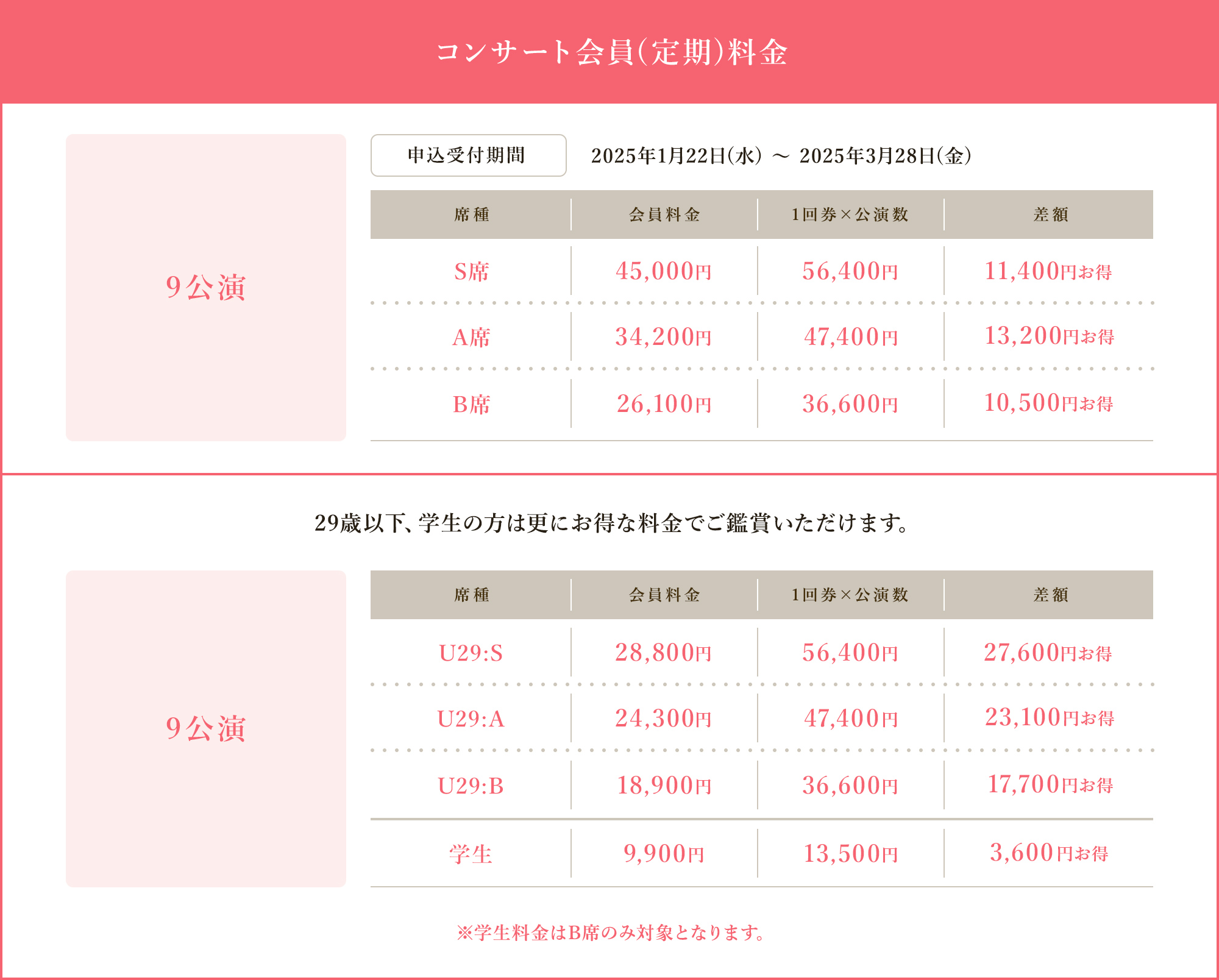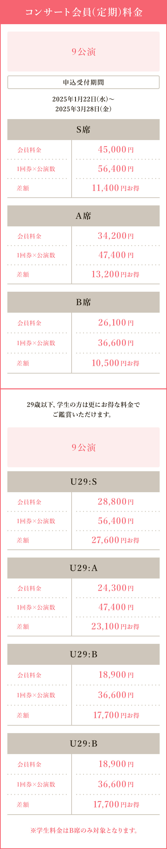 ※学生料金はB席のみ対象となります。