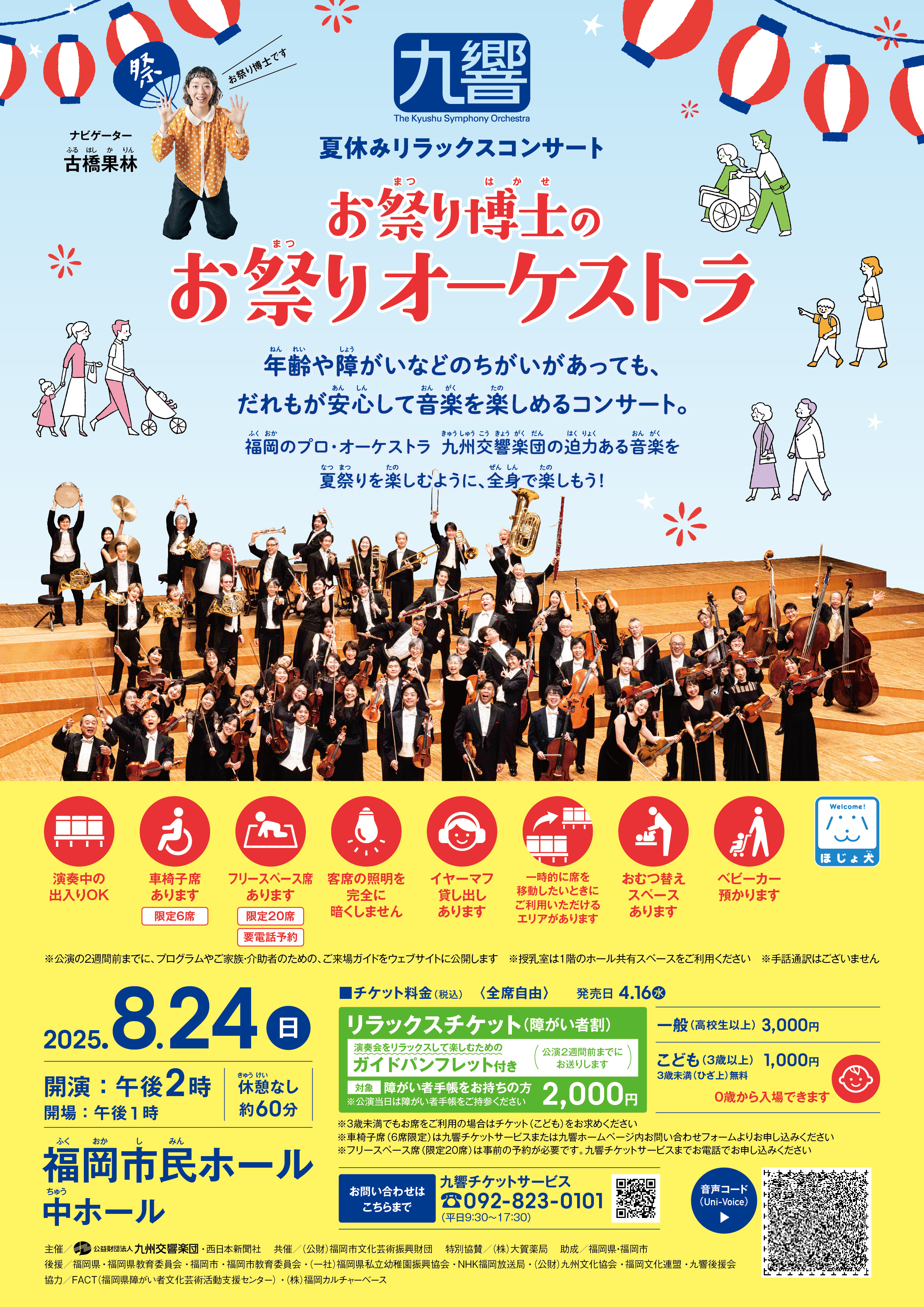 ※本公演では、舞台上のスクリーンに絵本を投影いたします。 前方のお座席およびバルコニー席では、お子さまの身長によっては、スクリーンが見えにくい場合がございます。あらかじめご了承のうえお求めください。 ハチャトゥリアン/バレエ音楽『ガイーヌ』より「剣の舞」、「バラの娘たちの踊り」、「レズギンカ」 和田薫/「おんがくはまほう」~朗読とオーケストラのための〜(ナレーション入り) J.シュトラウスⅡ世/ワルツ「美しく青きドナウ」 ※本公演につきましては休憩はございません ★バックステージツアー参加者(小学生20名)&子どもスタッフ(カゲアナ、ステマネ)を募集します。詳細はこちら。 ★本公演終演後、楽器体験ができます。詳細はこちら。 |