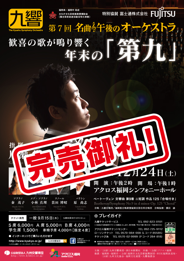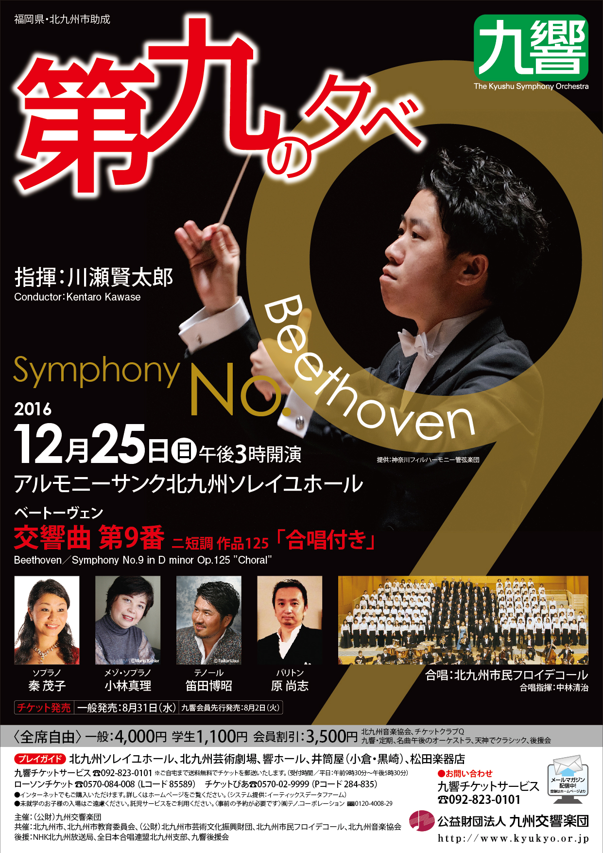指揮 : 川瀬賢太郎 ソプラノ : 秦茂子 メゾ・ソプラノ : 小林真理 テノール : 笛田博昭 バリトン : 原尚志 合唱 : 北九州市民フロイデコール ![]() |