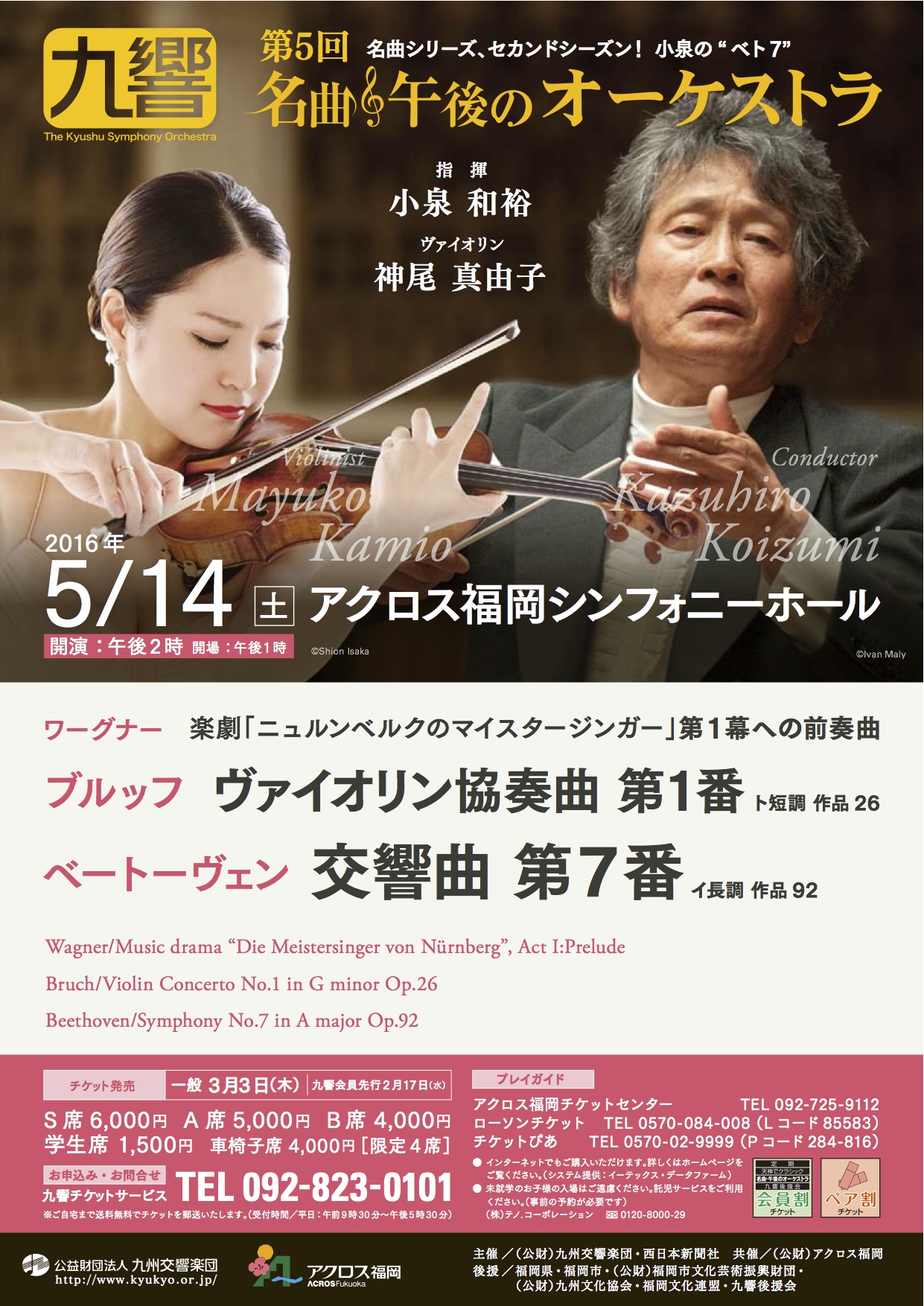 ワーグナー/楽劇「ニュルンベルクのマイスタージンガー」第1幕への前奏曲 ブルッフ/ヴァイオリン協奏曲 第1番 ト短調 作品26 ベートーヴェン/交響曲 第7番 イ長調 作品92 |