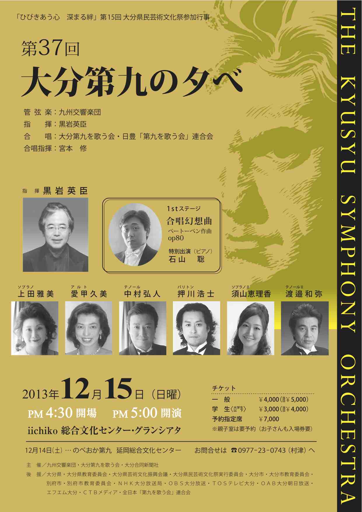 指揮 : 小泉 和裕 ソプラノ : 釜洞 祐子 アルト : 八木寿子 テノール : 宮里 直樹 バリトン : 成田 博之 合唱 : 九響合唱団・福岡県合唱連盟福岡支部合同合唱団 合唱指揮 : 横田 諭 ![]() |