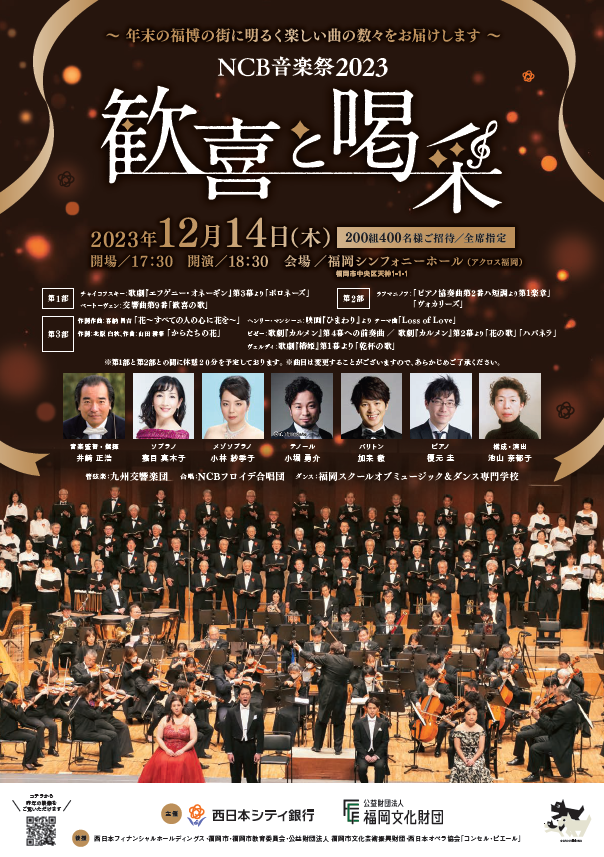グリンカ/「ルスランとリュドミラ」序曲 チャイコフスキー/「白鳥の湖」より「情景」 ドッド/ミッキー・マウス・マーチ アンダーソン/プリンク・プランク・プルンク シューベルト/「ロザムンデ」間奏曲 マスカーニ/「カヴァレリア・ルスティカーナ」間奏曲 チャイコフスキー/「くるみ割り人形」より花のワルツ ●マタニティチケットをご購入のお客様は、母子健康手帳の確認をさせていただきます。 九響オンラインチケット、および、お電話でのご購入の場合は、マタニティチケットご購入者専用入力フォーム(WEB)への入力をお願いします。 ※午後公演のフリースペースは完売しました(2024/4/12 更新) ※午前公演のベビーカー席は完売しました(2024/4/16 更新) ※午前公演のフリースペースは完売しました(2024/4/23 更新) |