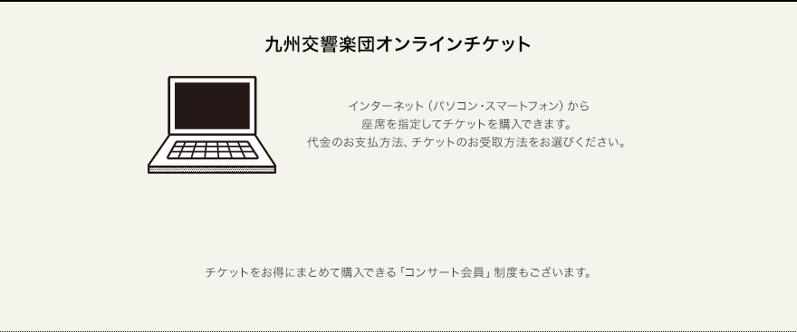 2019年4月2日より新サービス開始!九響オンラインチケットにて公演チケットをお買い求めいただく際に、クレジット決済をお選びいただくと、バーコードチケット(QRコードが表示されます)でのお受け取りが可能になります。お受け取りになったチケットはご自宅でプリントアウトいただくか、スマートフォンやモバイル機器での画面表示でご入場いただけます。※福岡シンフォニーホールにおける九響主催公演のみ対象となります。